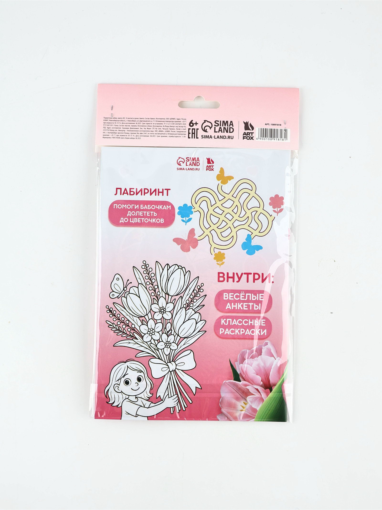 Подарочный набор, анкета для девочек А5, 16 л, ручка "8 Марта", ArtFox, Россия