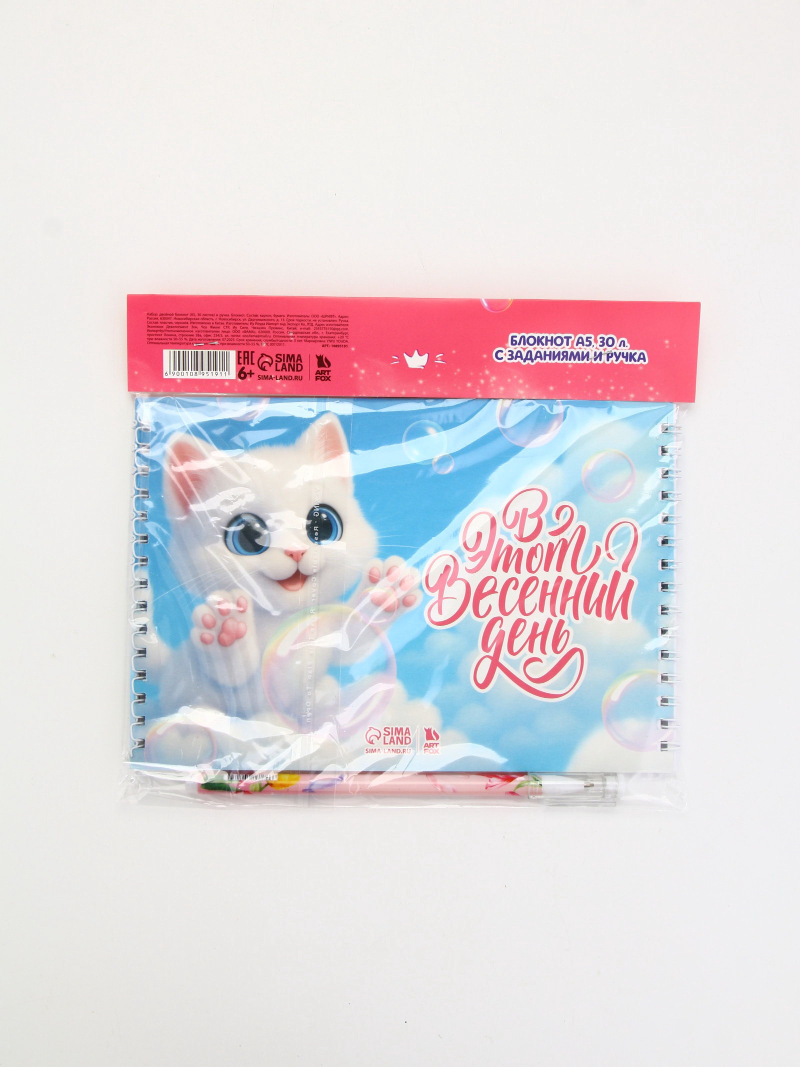Подарочный набор, двойной блокнот с заданиями, ручка "Котик", ArtFox, Россия