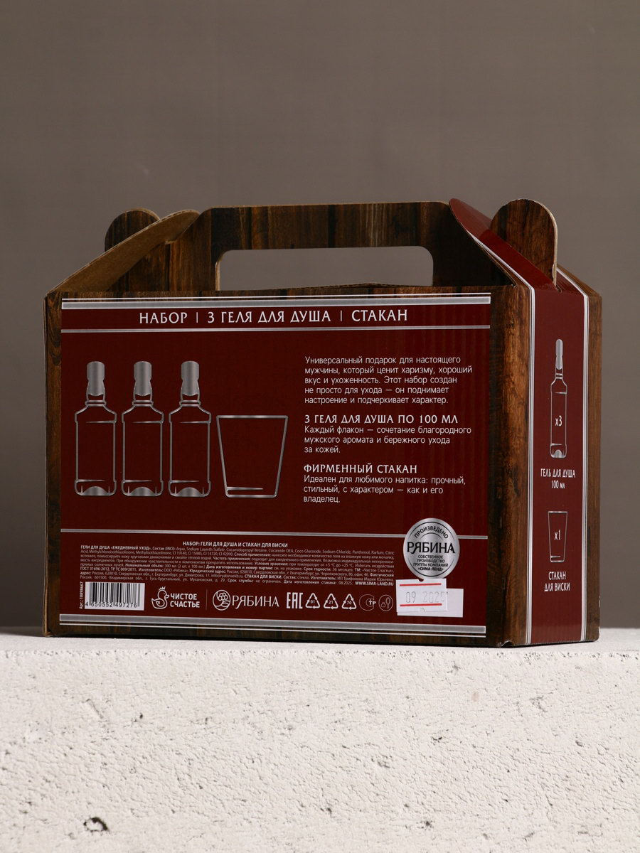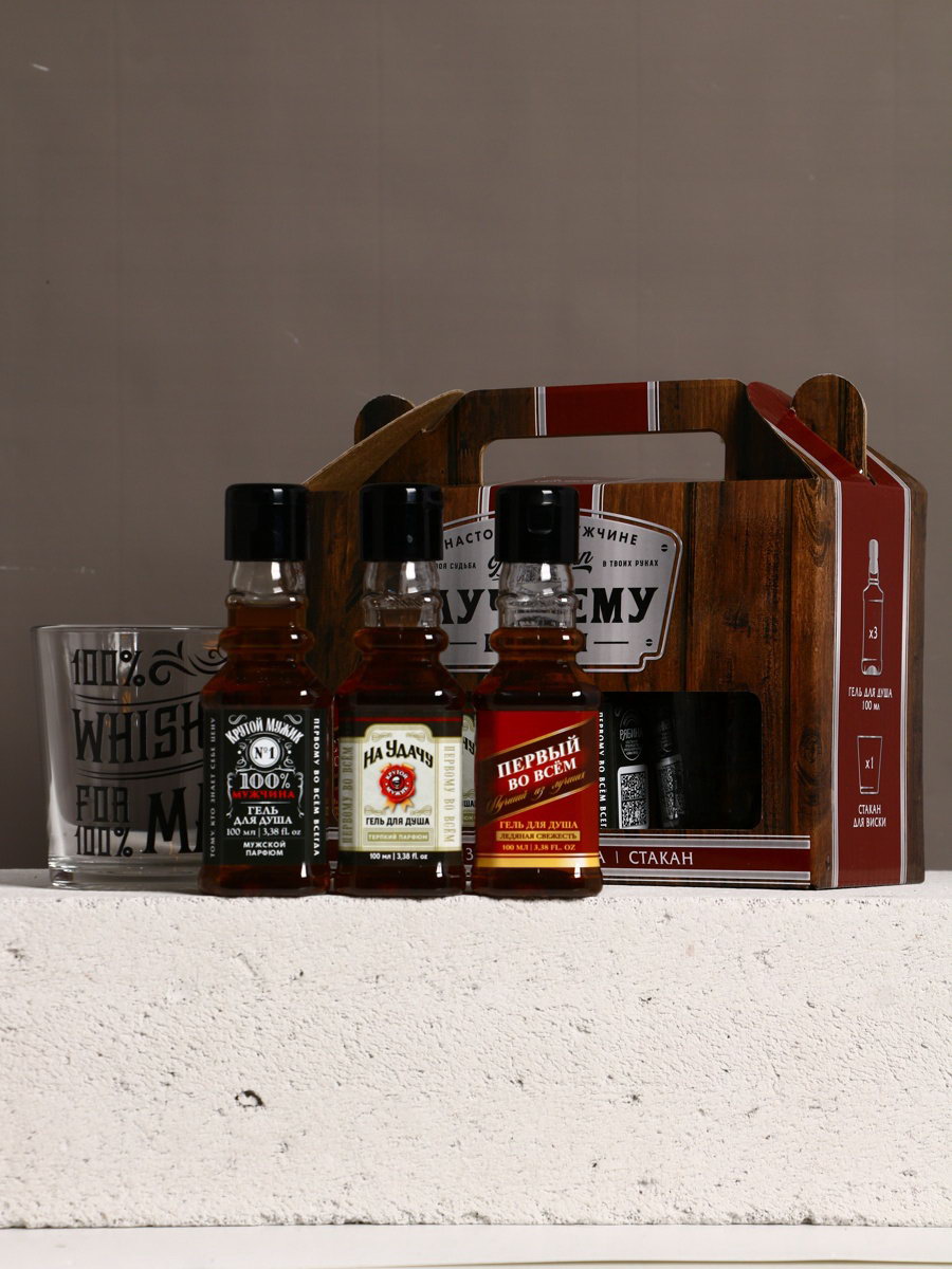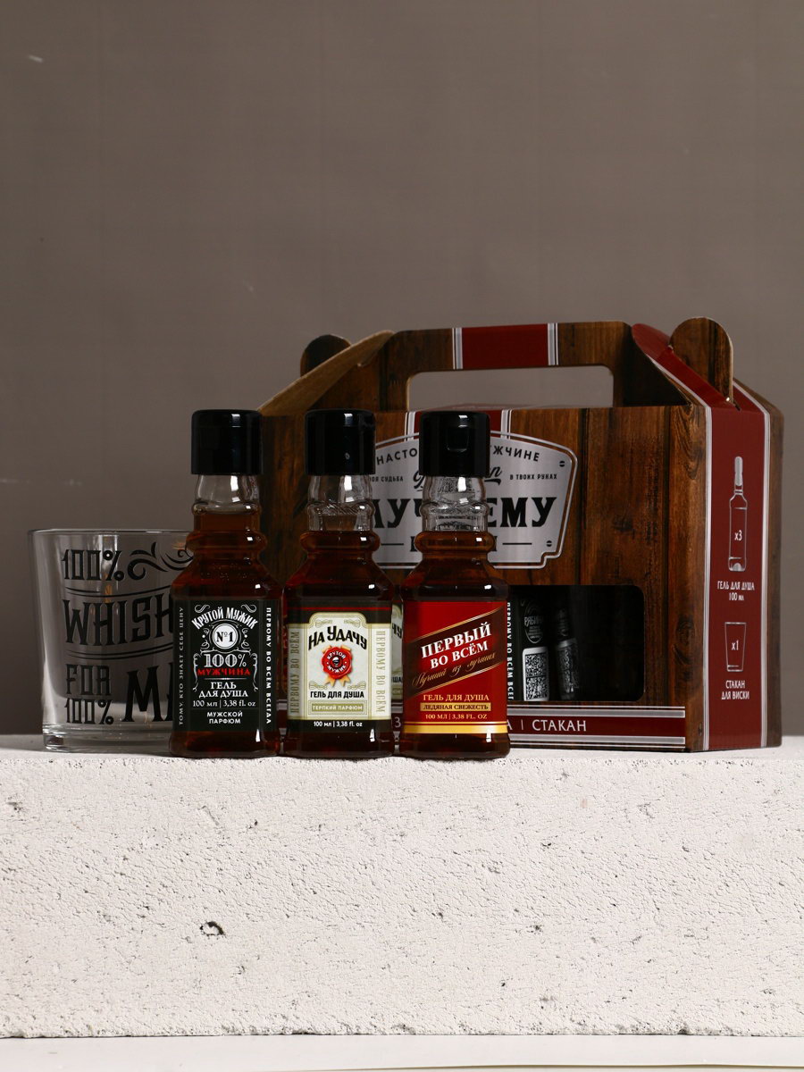 Подарочный набор мужской "Первый во всем", гель для душа виски 3 шт., стакан для виски, Чистое счастье, Россия