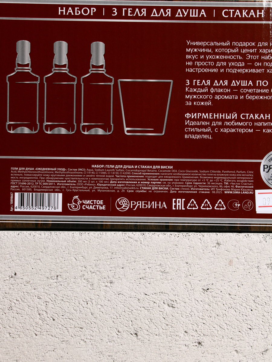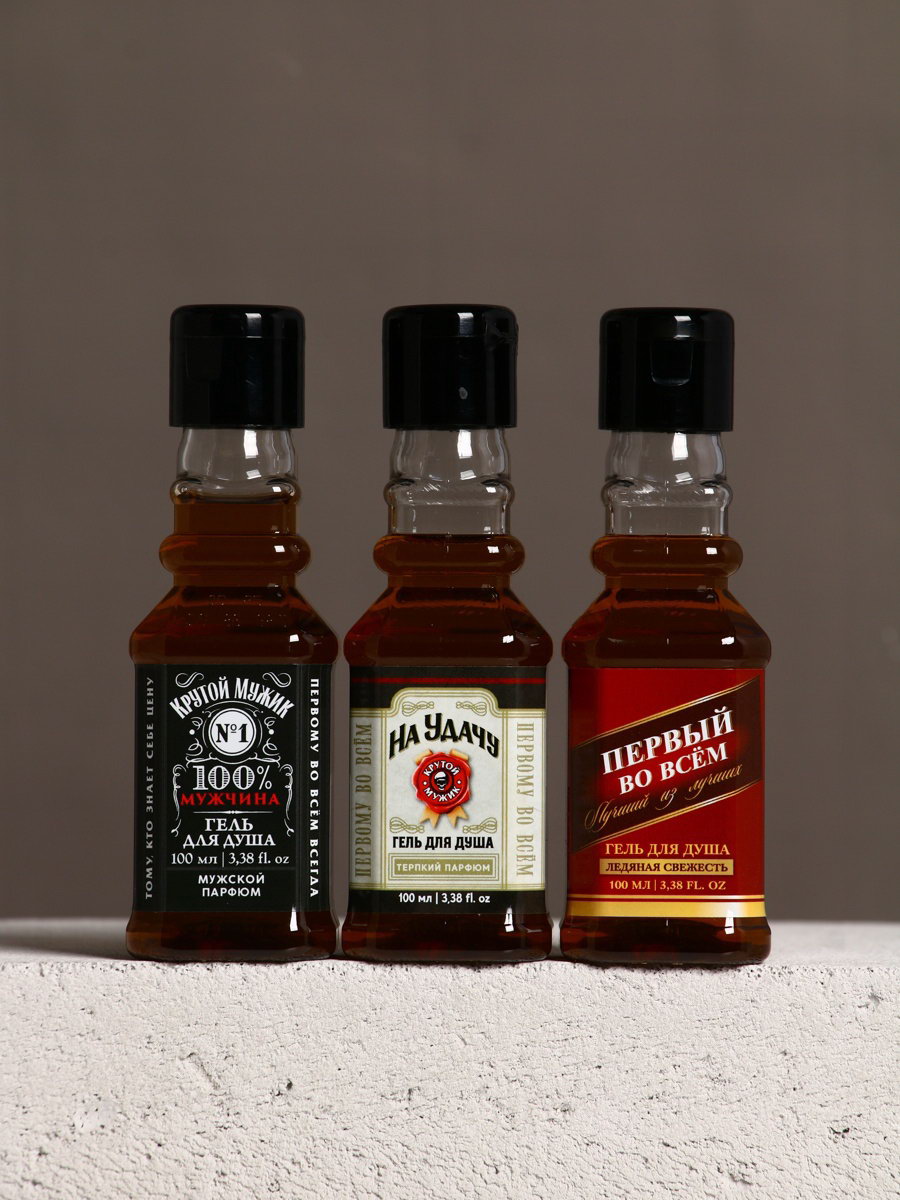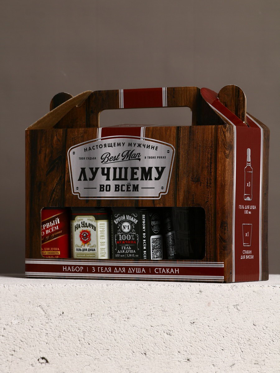 Подарочный набор мужской "Первый во всем", гель для душа виски 3 шт., стакан для виски, Чистое счастье, Россия