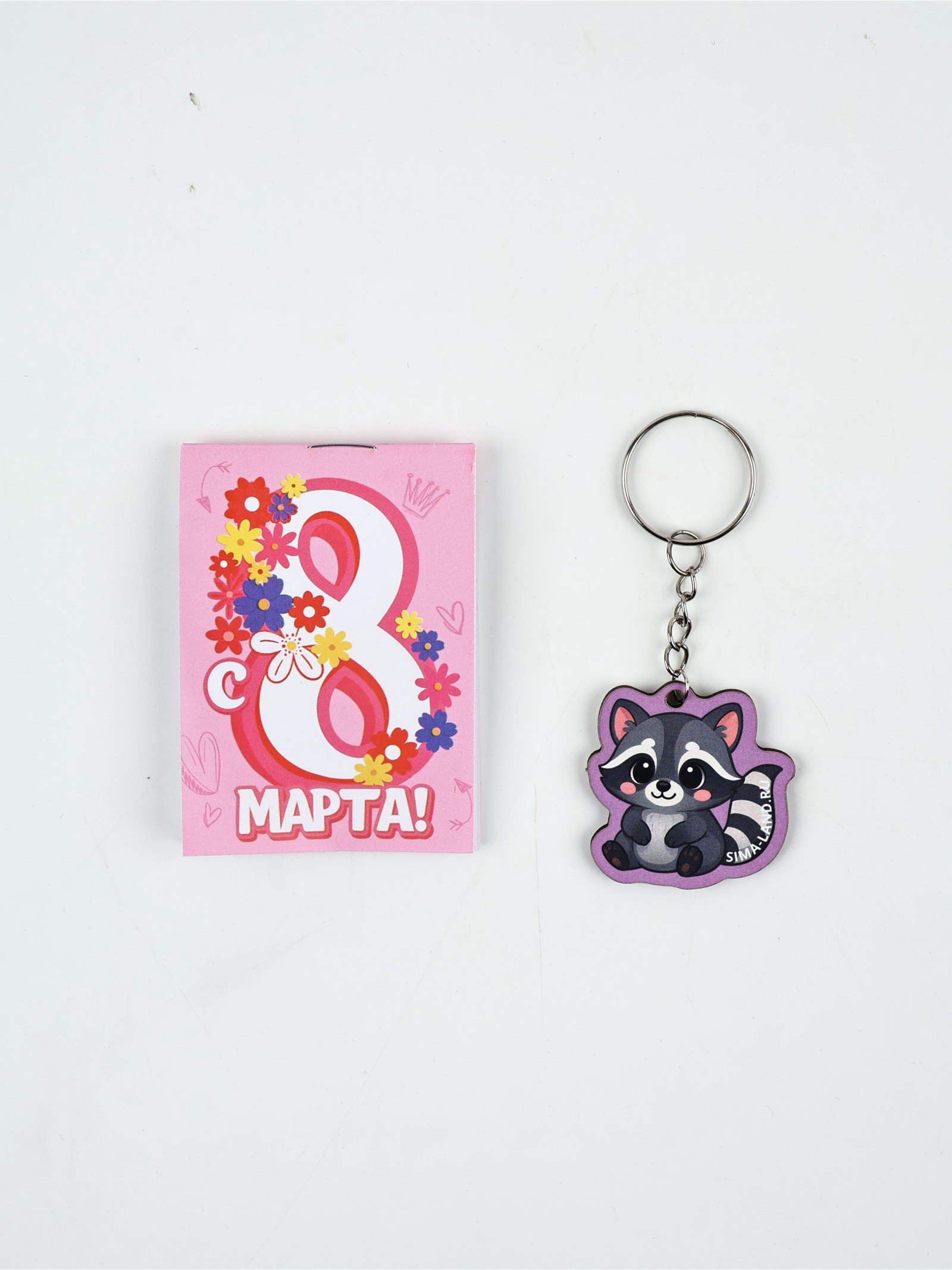 Подарочный набор: блокнот А7, 16 листов и деревянный брелок "С 8 Марта", Россия