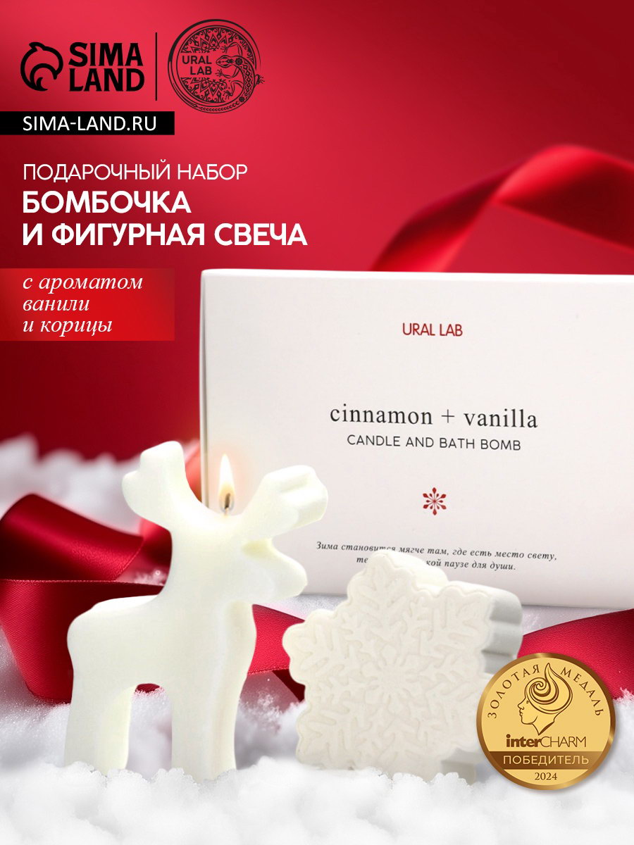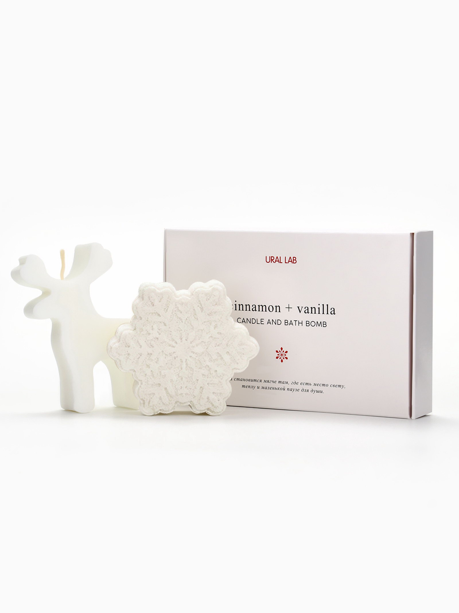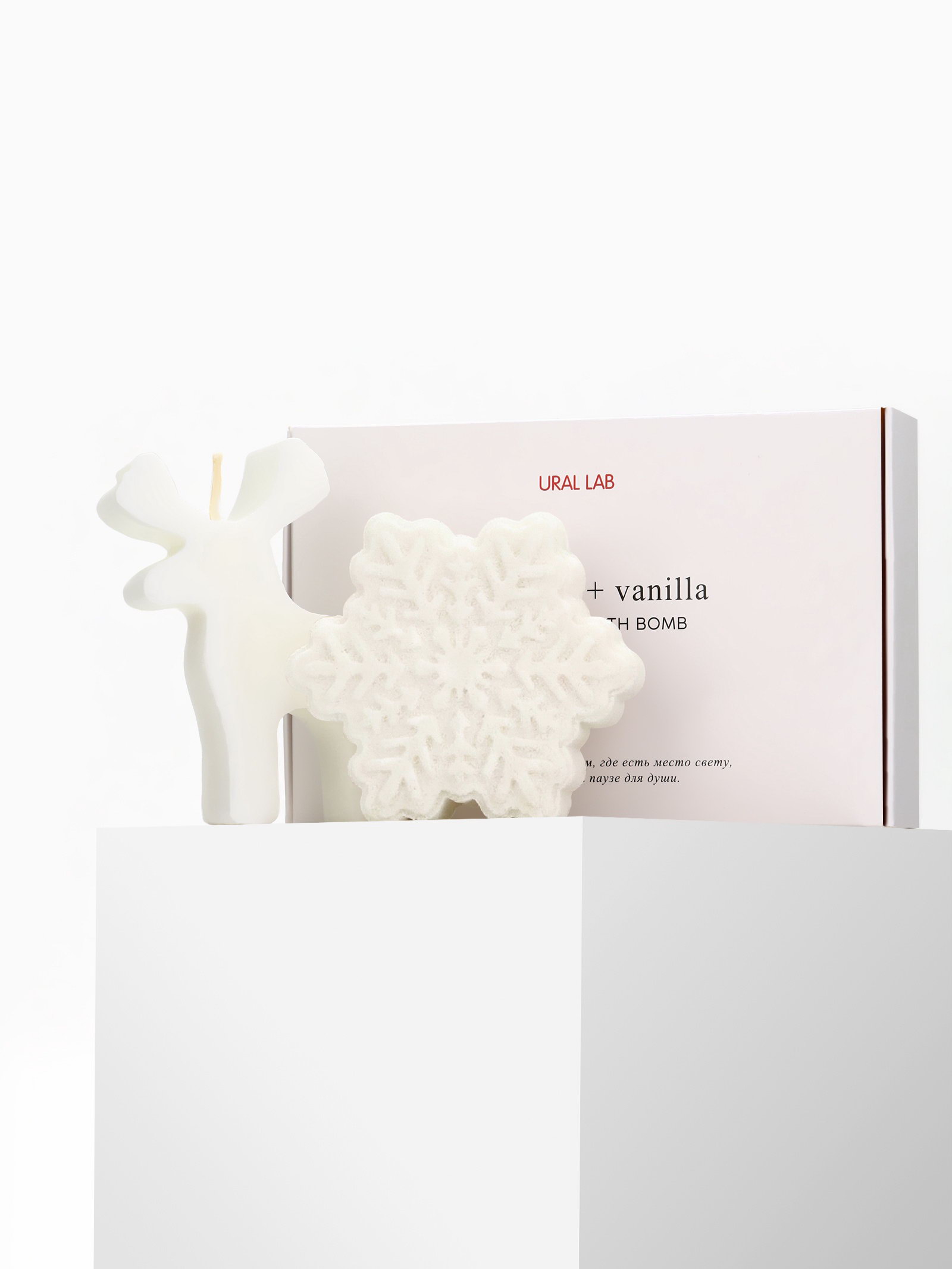 Подарочный набор новогодний: бомбочка снежинка и фигурная свеча олень, URAL LAB, Россия
