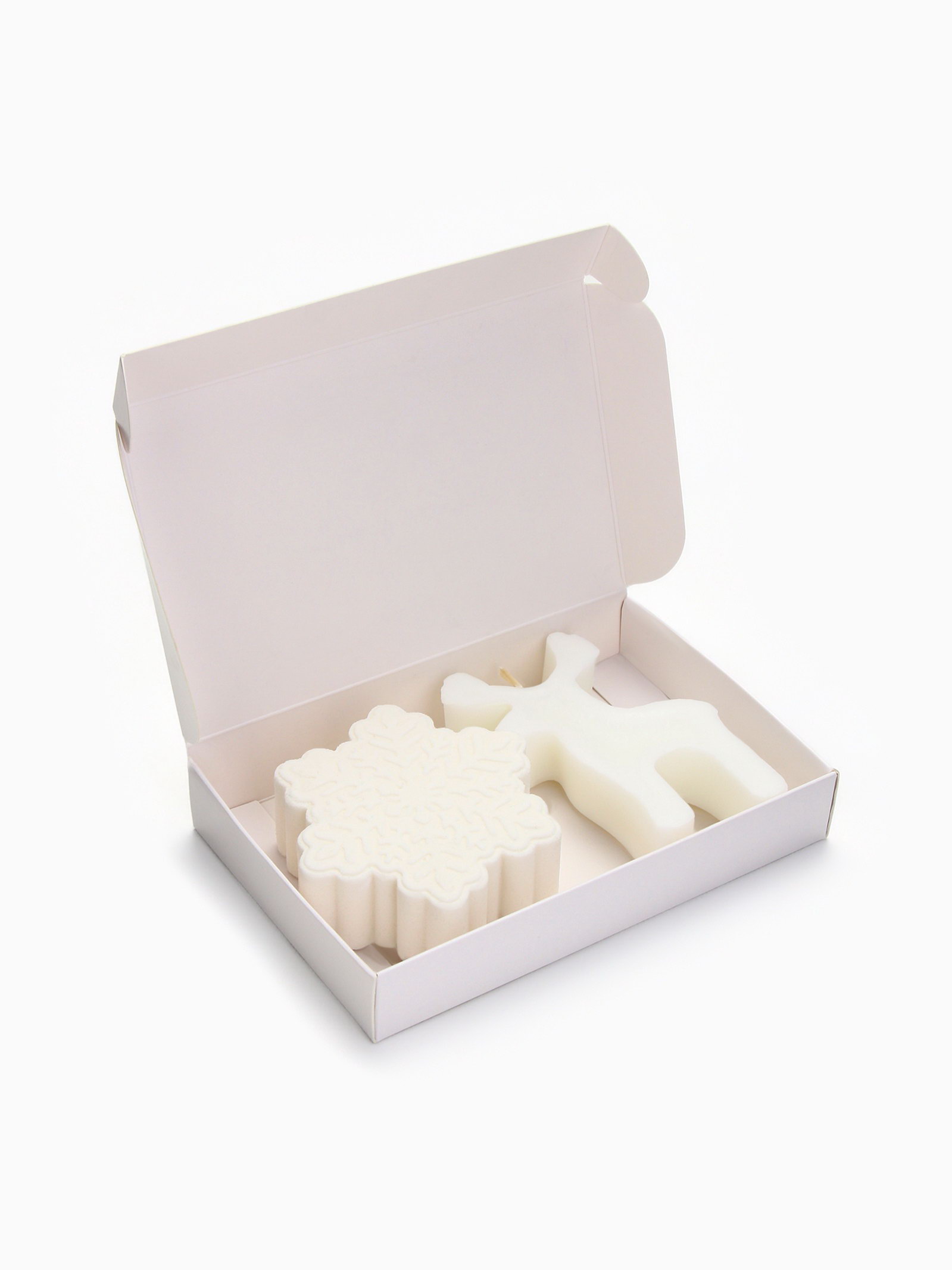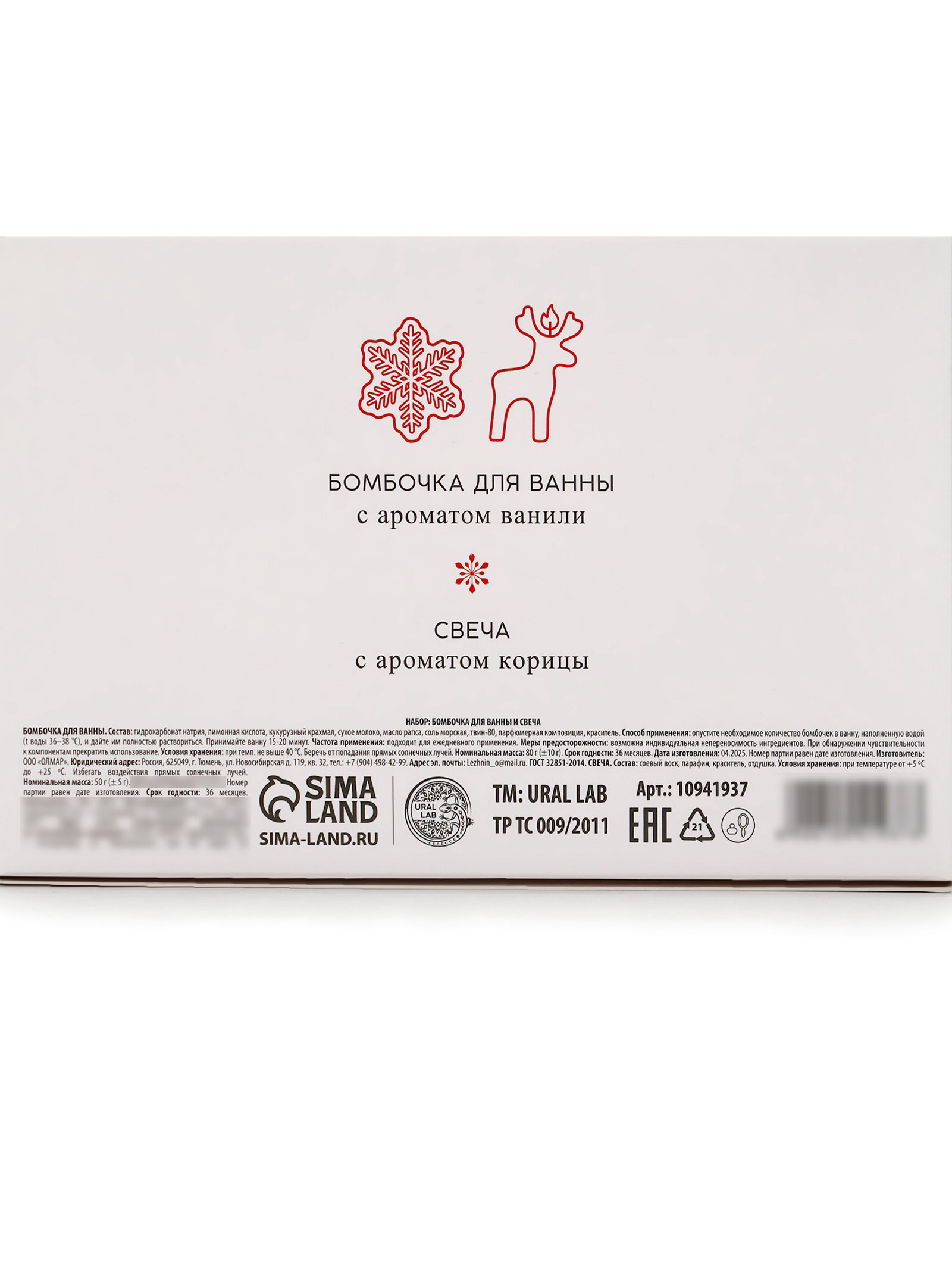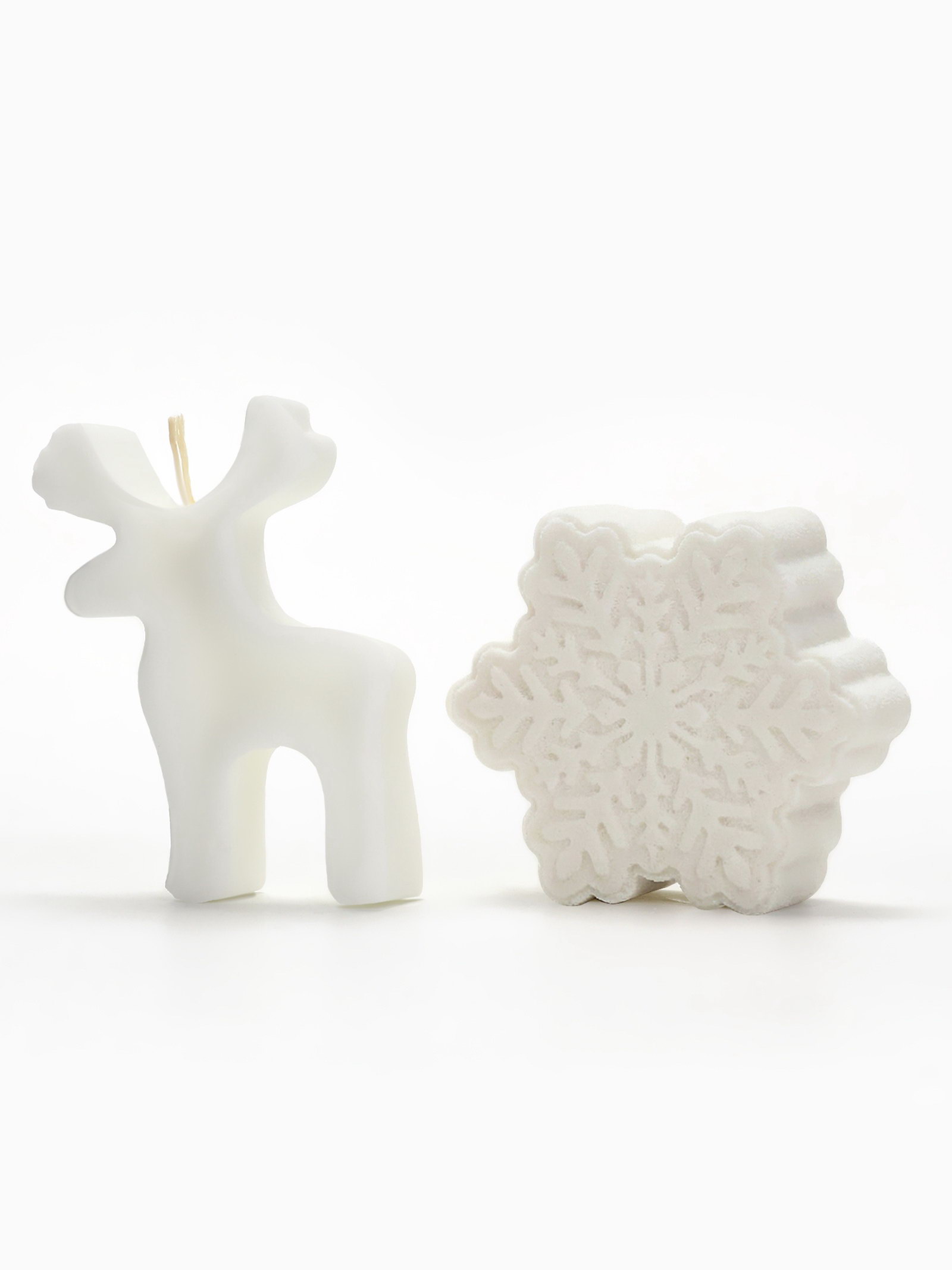 Подарочный набор новогодний: бомбочка снежинка и фигурная свеча олень, URAL LAB, Россия