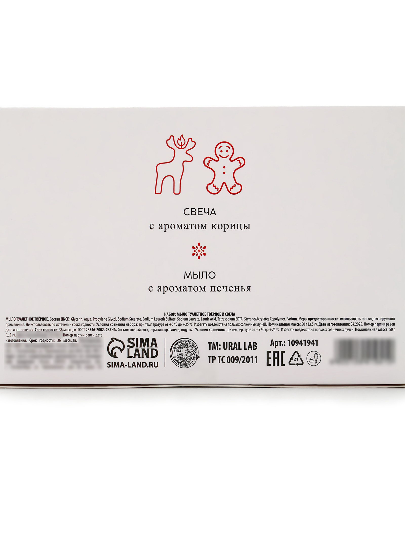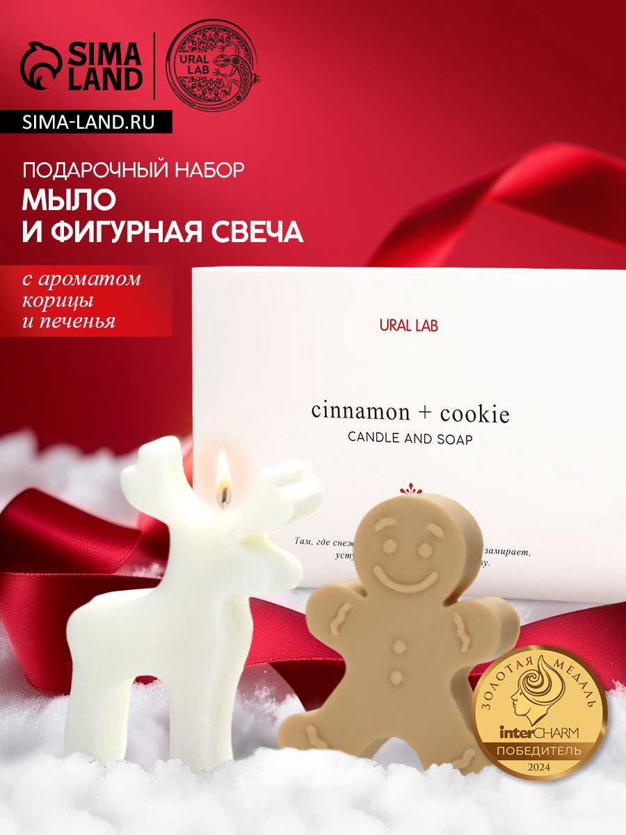 Подарочный набор новогодний: фигурное мыло пряня и фигурная свеча олень, URAL LAB, Россия