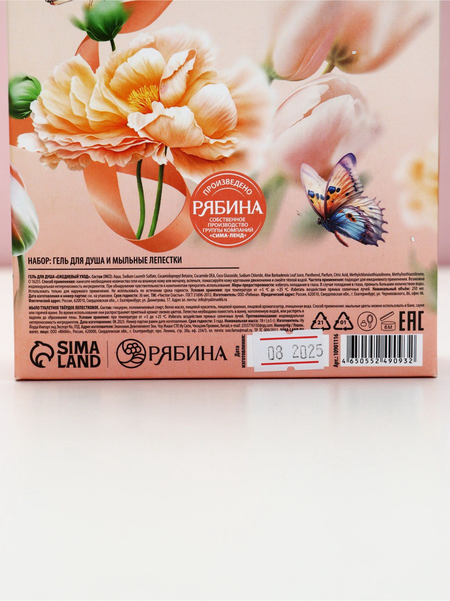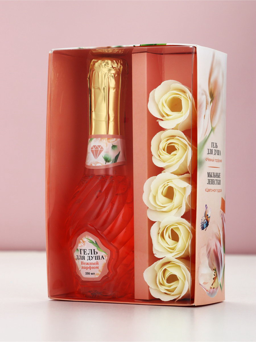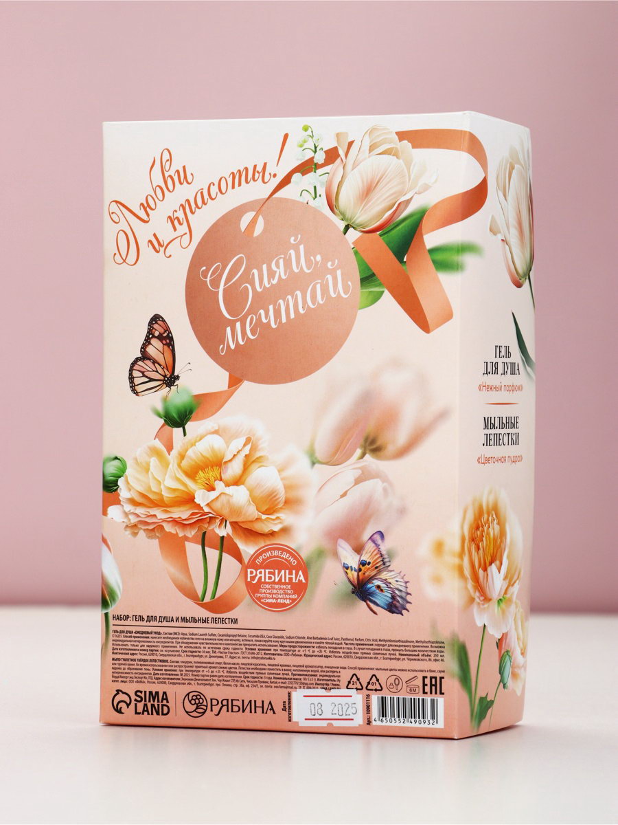 Подарочный набор "Сияй Мечтай", гель для душа мондоро и мыльные цветы, Чистое счастье, Россия