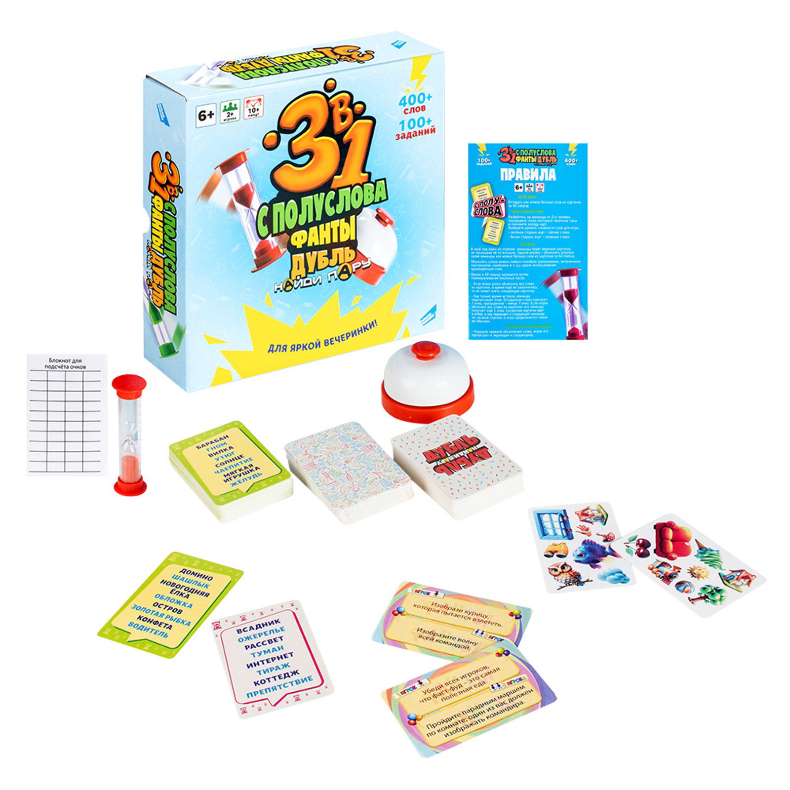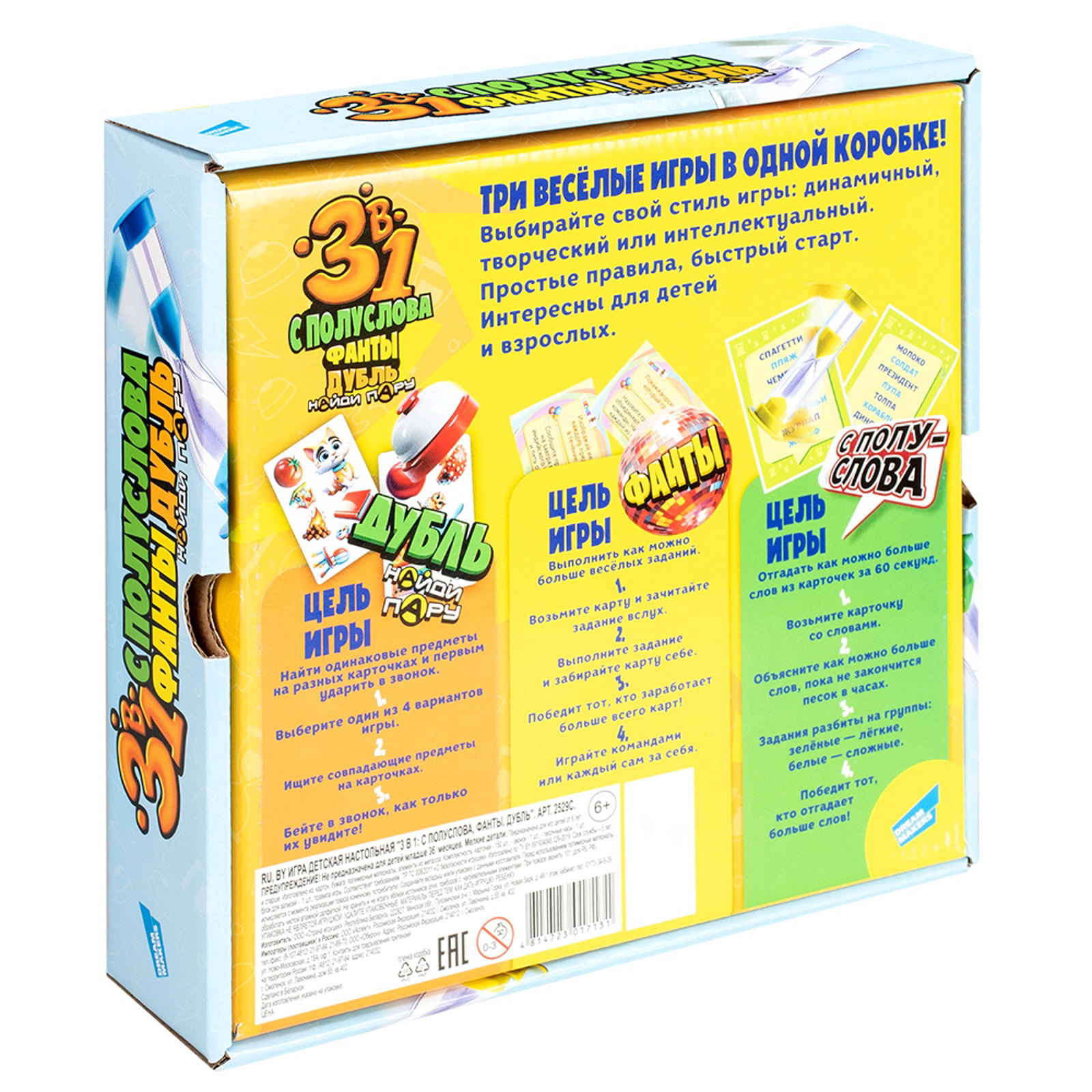 Настольная игра "3 в 1: С полуслова, Фанты, Дубль", Dream Makers, Беларусь