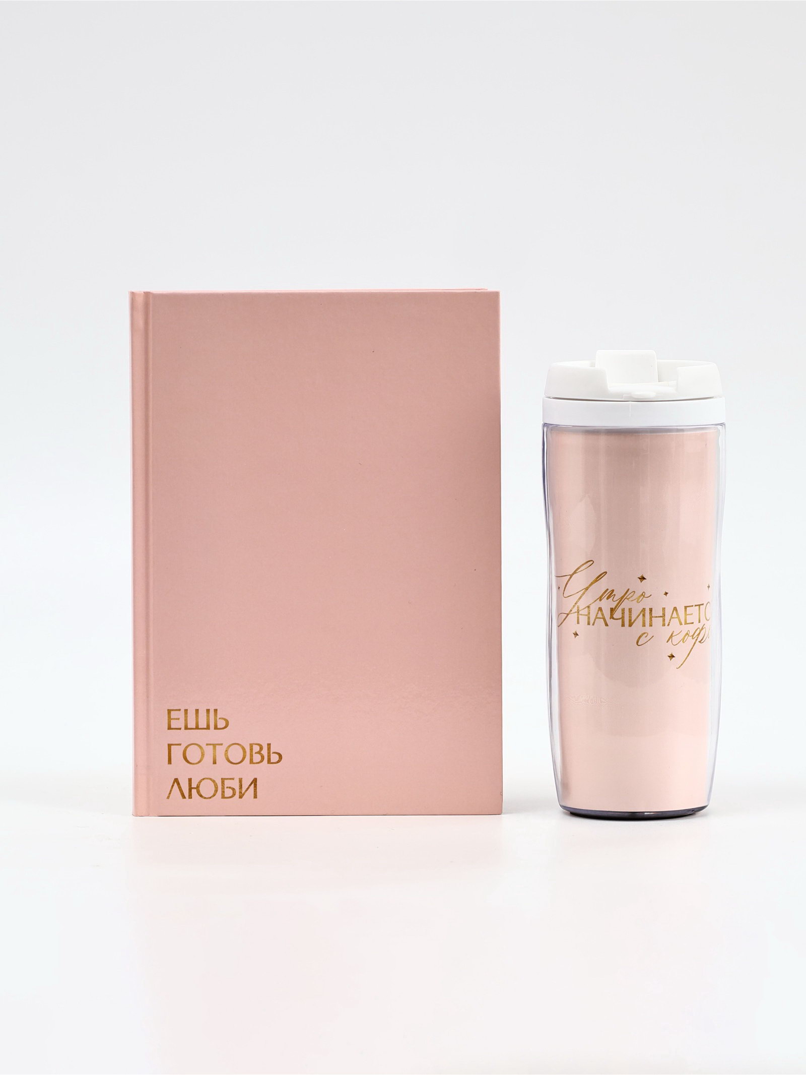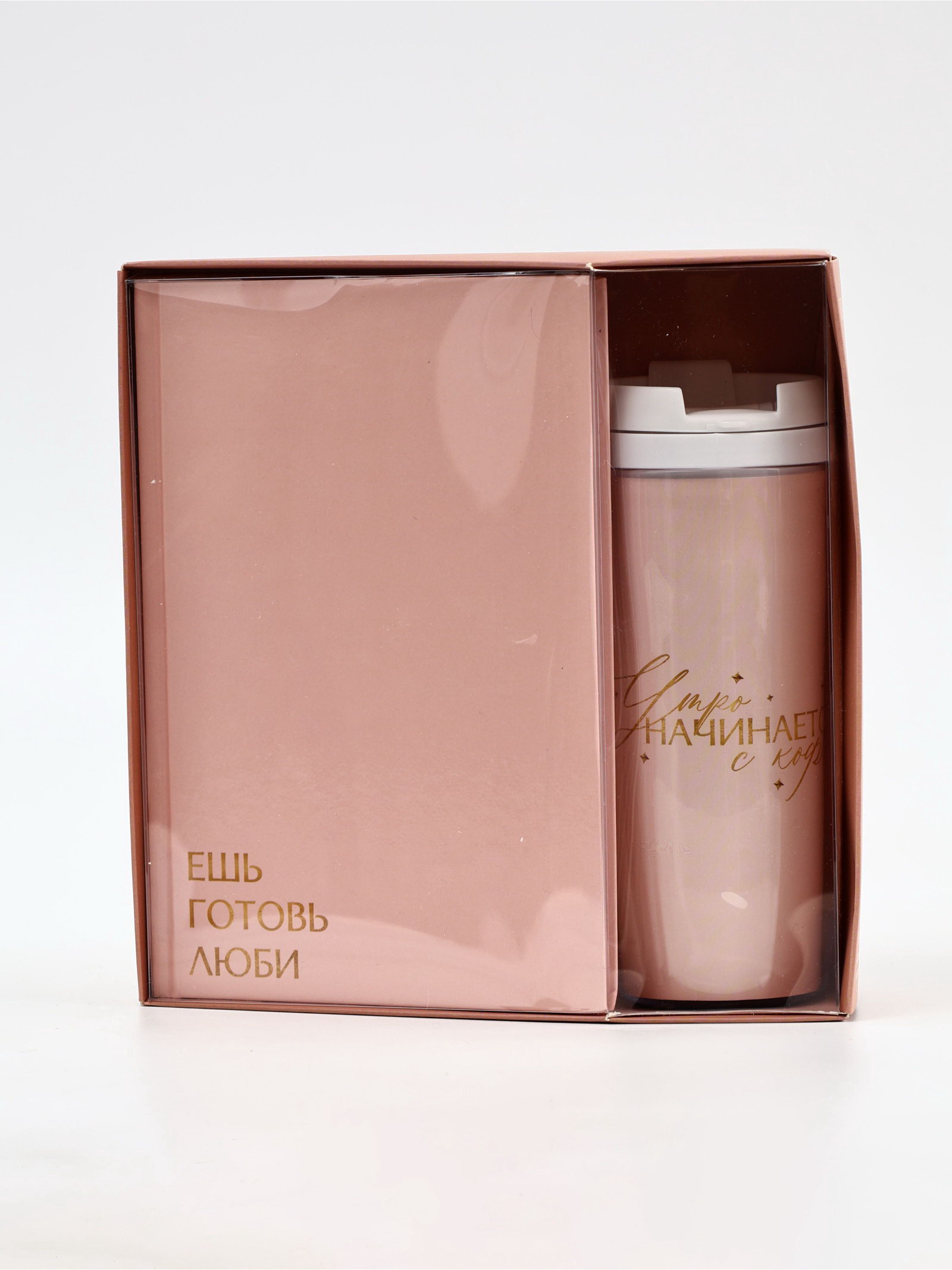 Набор: Книга для записи рецептов А5, 80 л и термостакан 350 мл "Ешь, готовь, люби", ArtFox, Россия