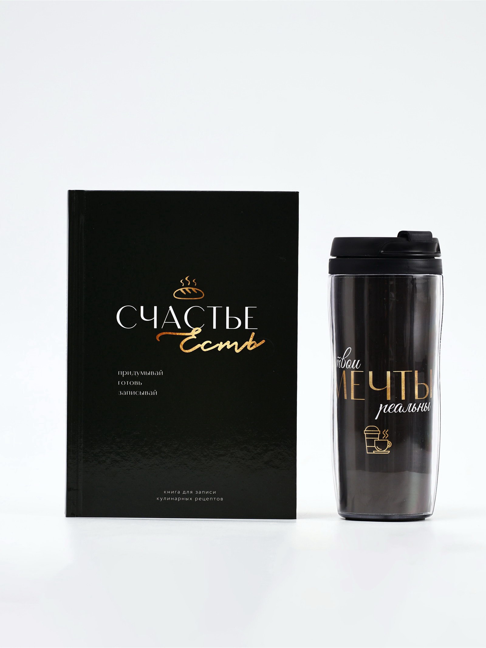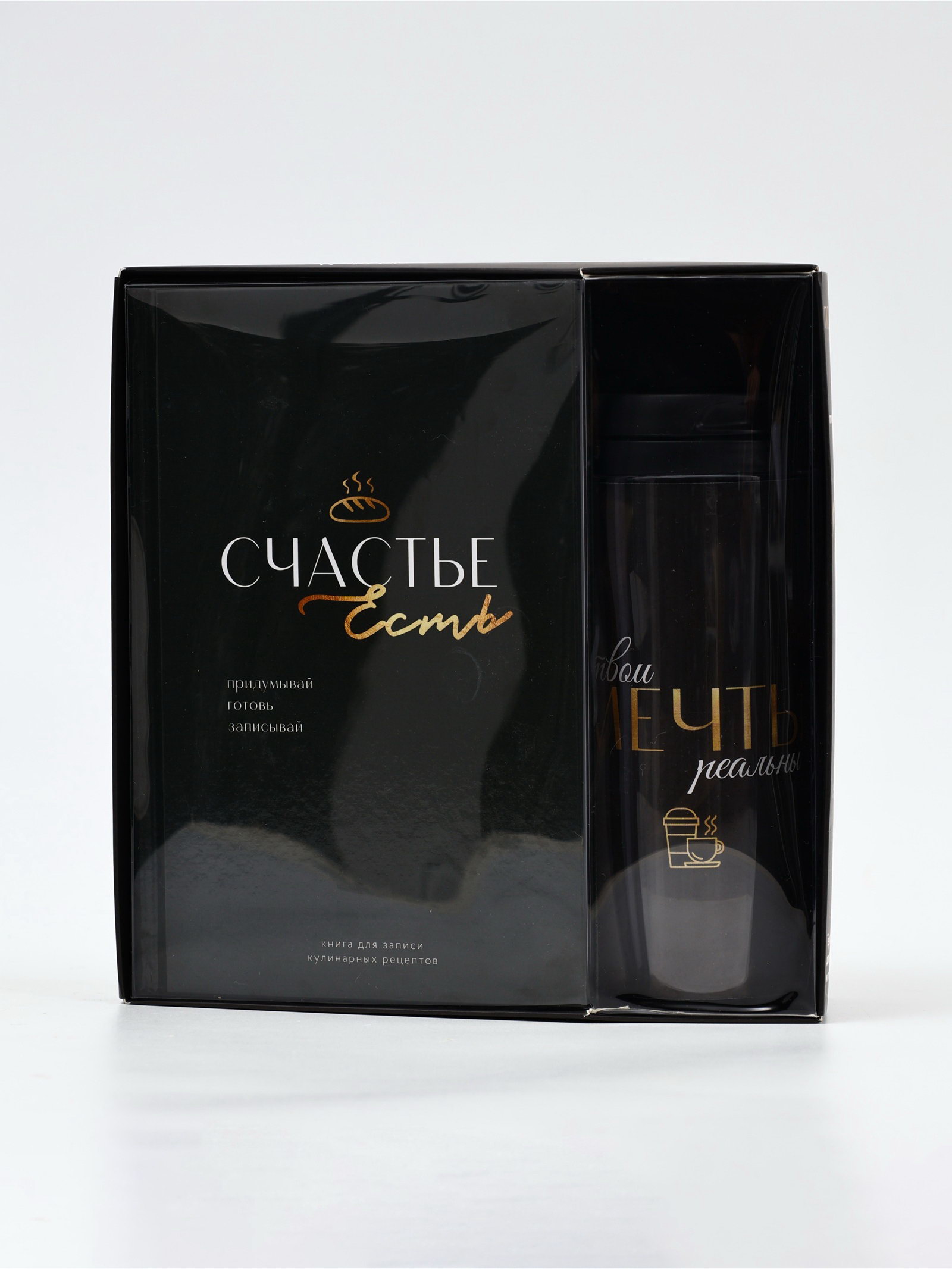 Набор: Книга для записи рецептов А5, 80 л и термостакан 350 мл "Счастье", ArtFox, Россия