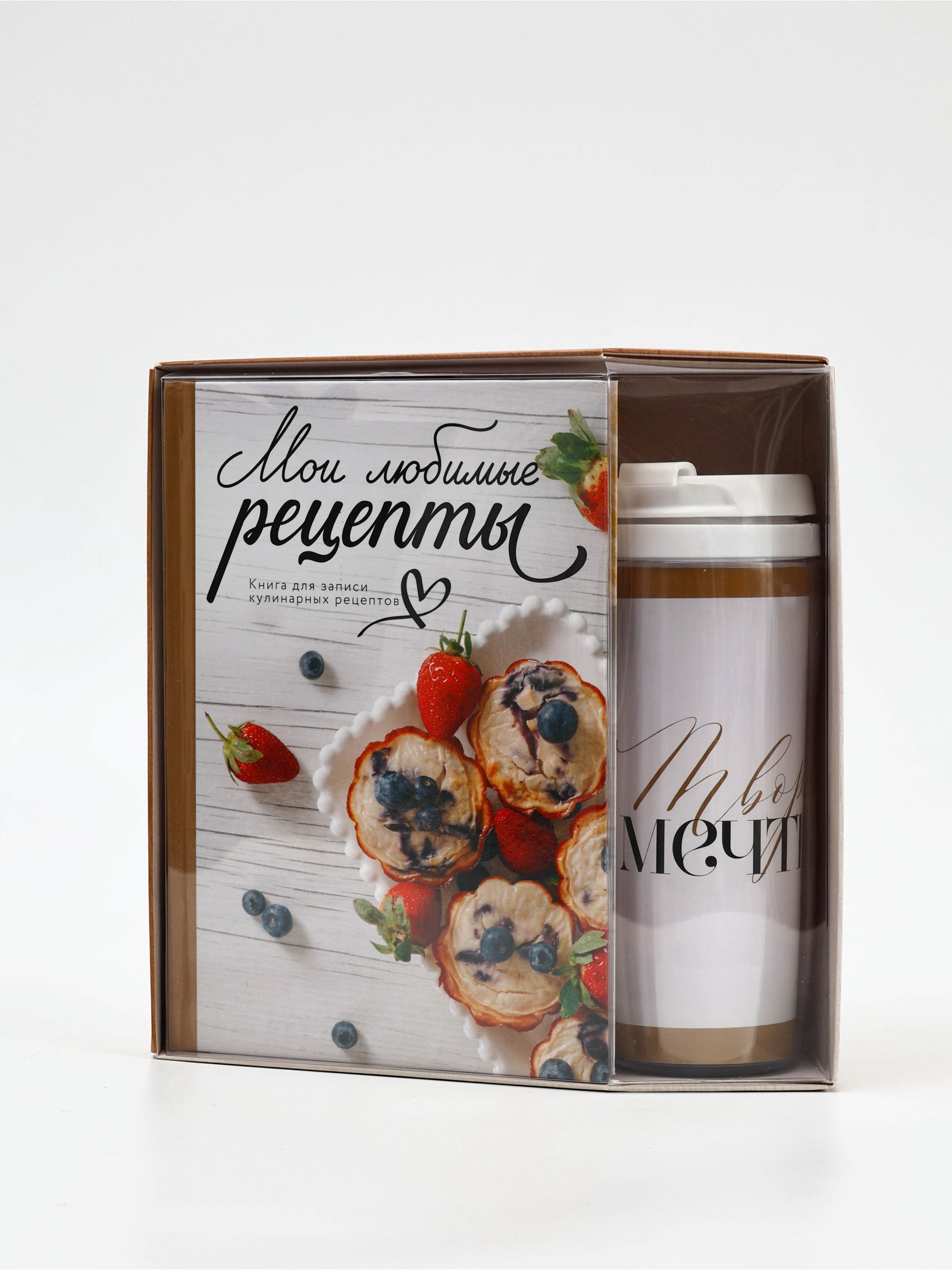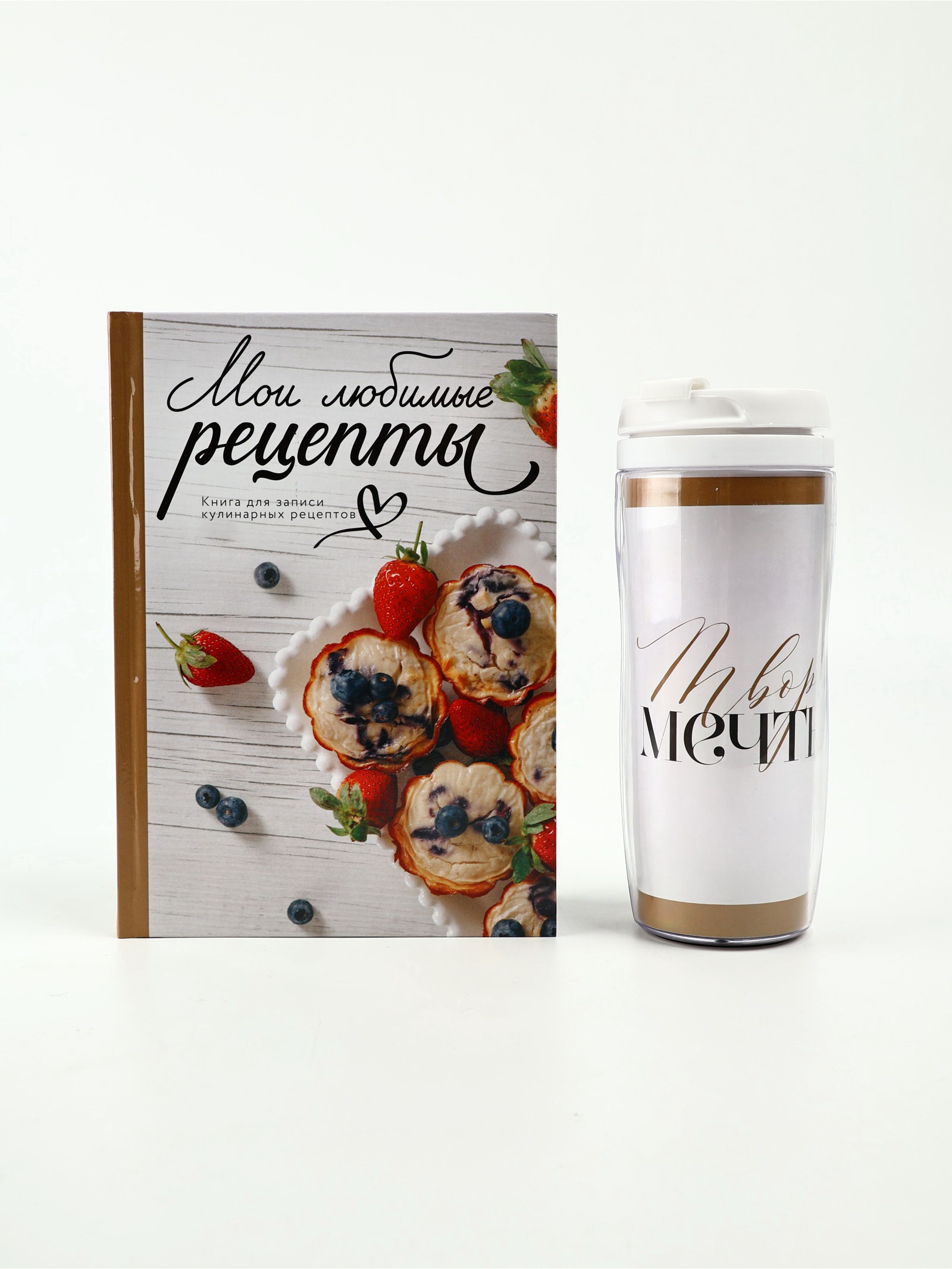 Набор: Книга для записи рецептов А5, 80 л и термостакан 350 мл "Мои рецепты", ArtFox, Россия
