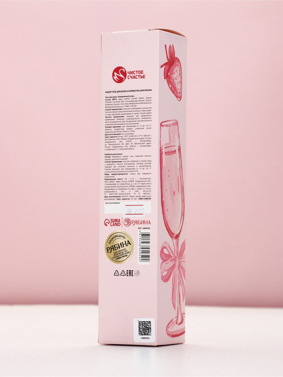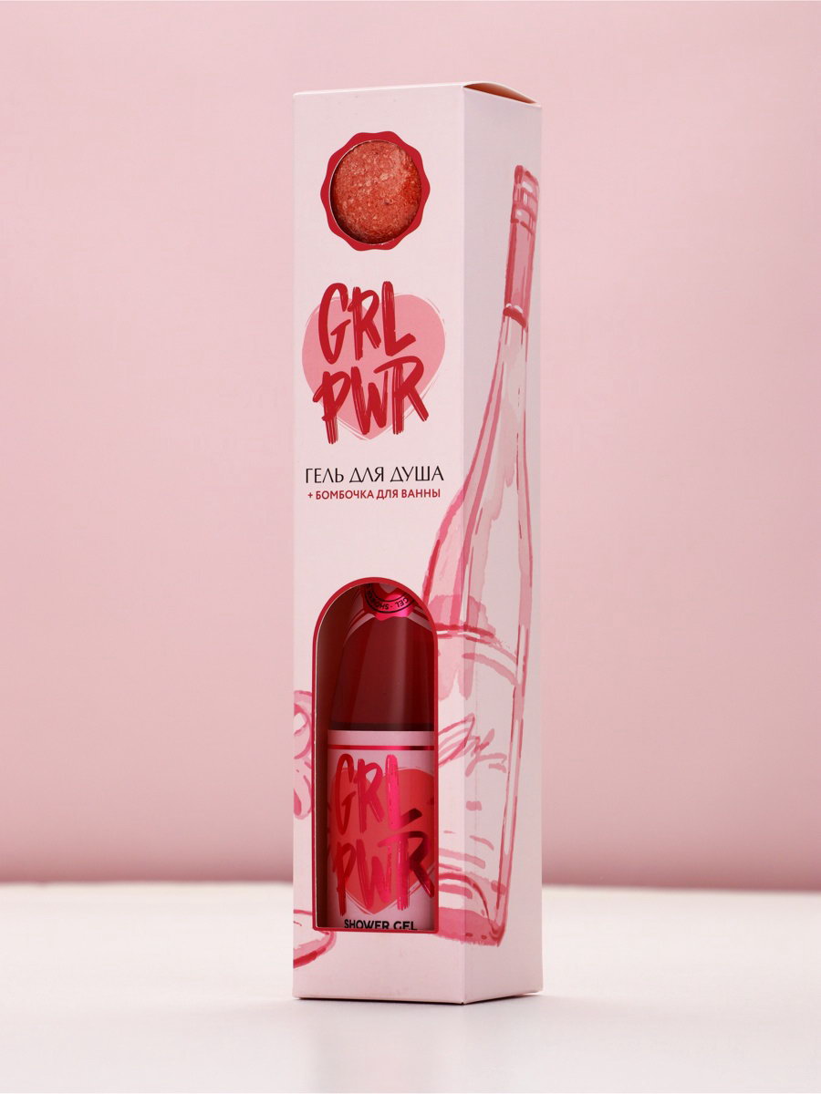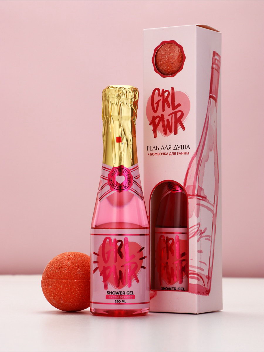 Подарочный набор GRL PWR, гель для душа шампанское 250 мл и бомбочка для ванны, Чистое счастье, Россия