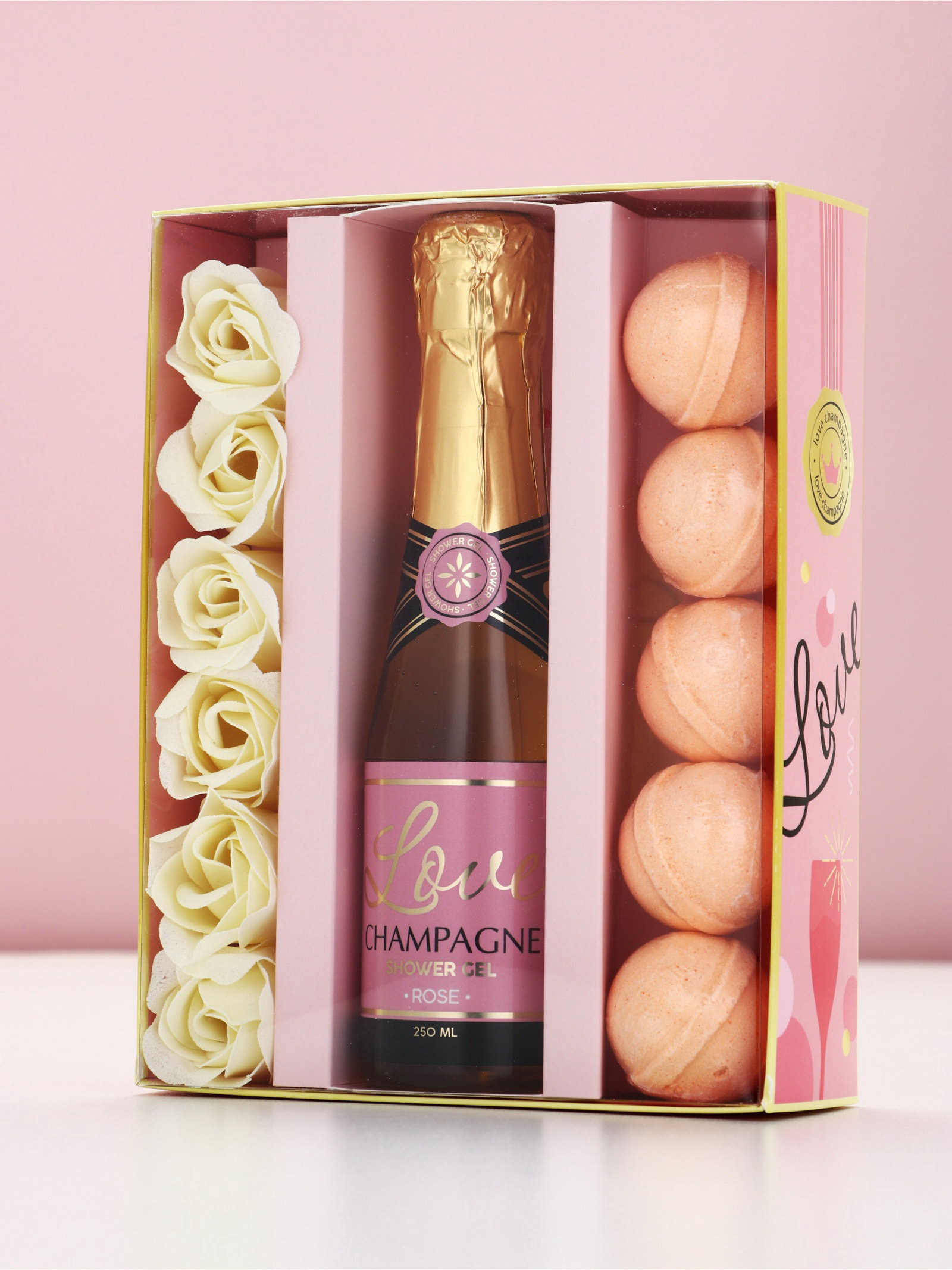 Чистое Счастье Женский набор Розовое шампанское, мыльные цветы и бурлящие шары, Россия