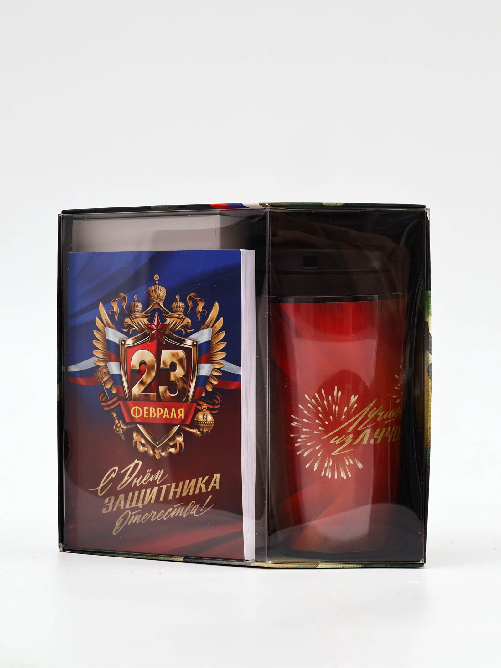 Подарочный набор: Ежедневник А6, 80 л, термостакан 250 мл "С 23 февраля", ArtFox, Россия