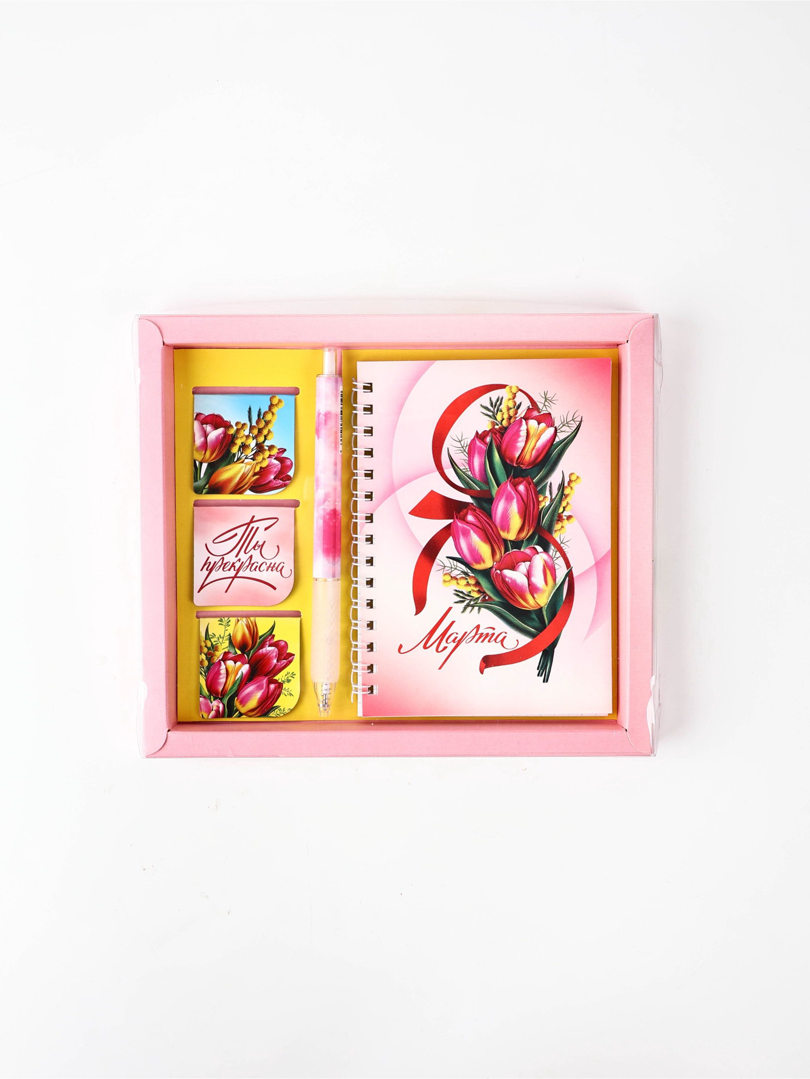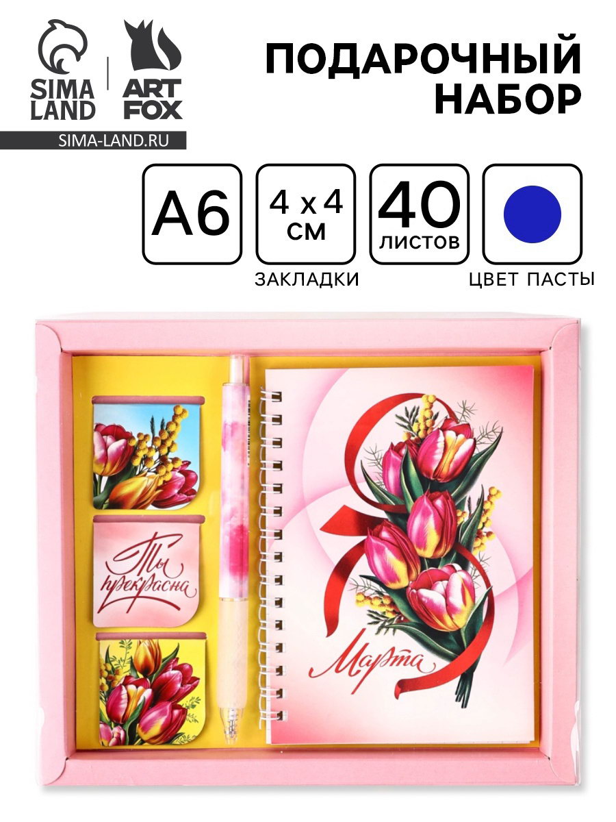 Подарочный набор: Блокнот А6, 40 л, магнитные закладки, ручка "С 8 Марта", ArtFox, Россия