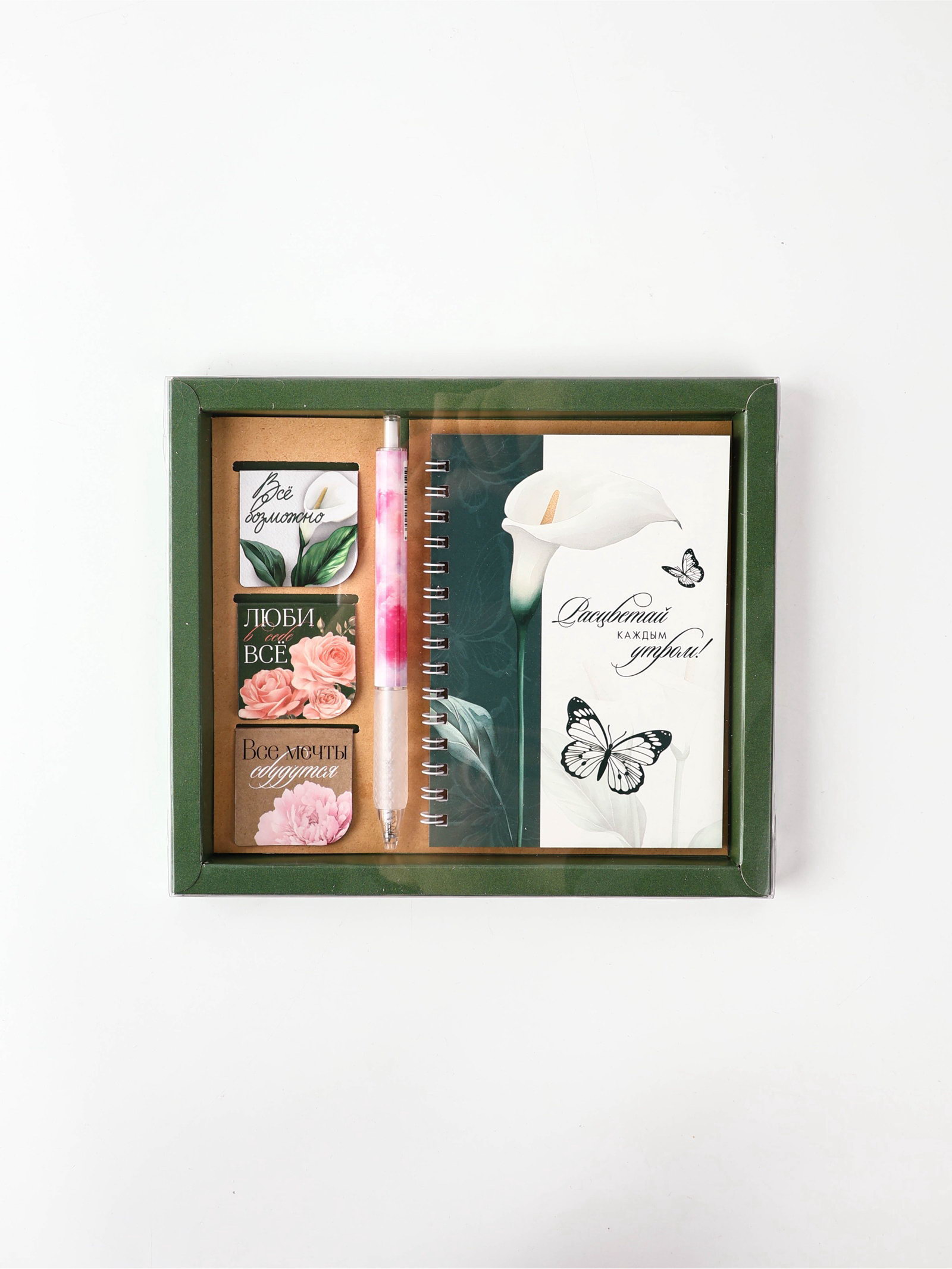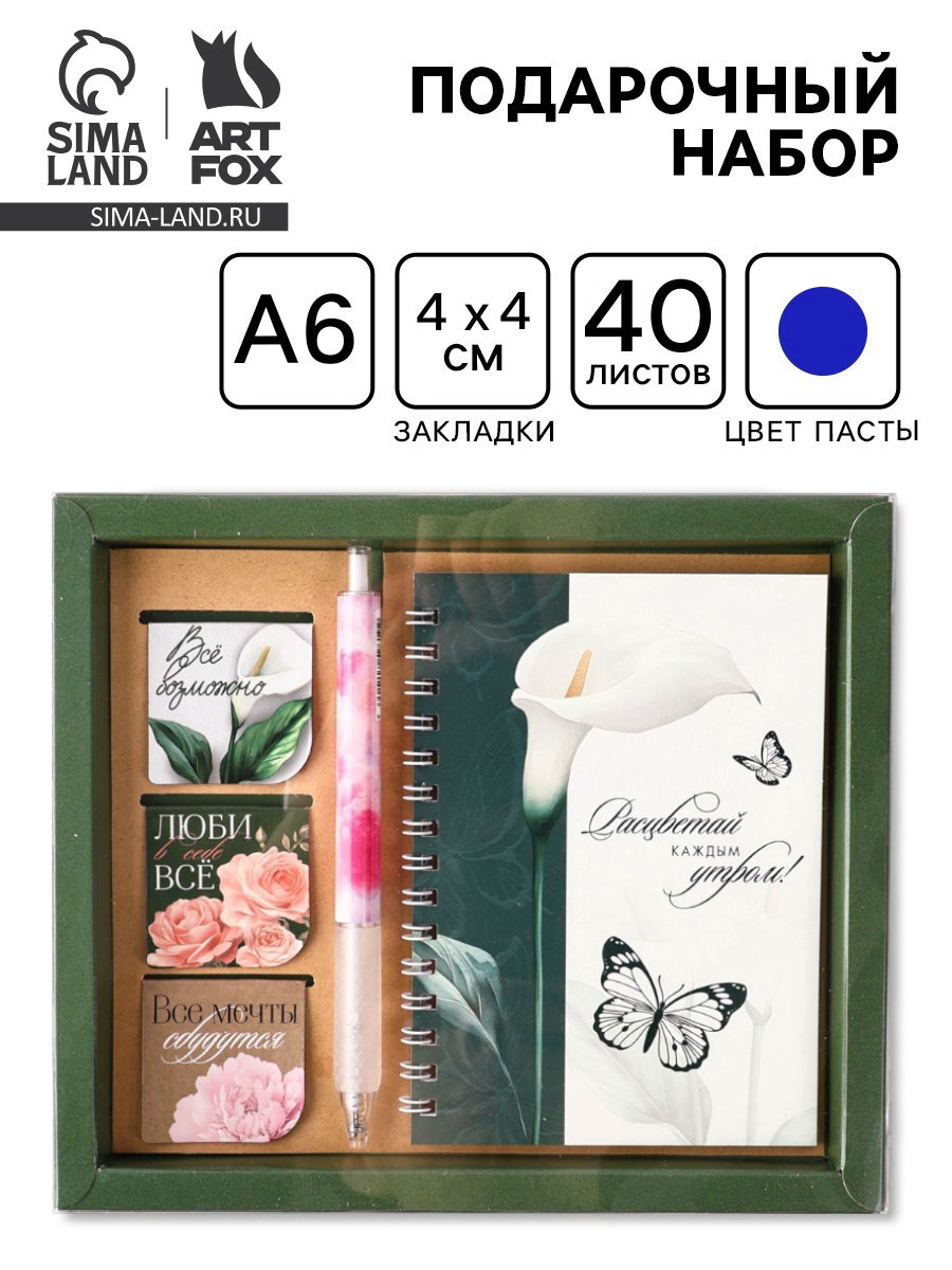 Подарочный набор: Блокнот А6, 40 л, магнитные закладки, ручка "Расцветай", ArtFox, Россия