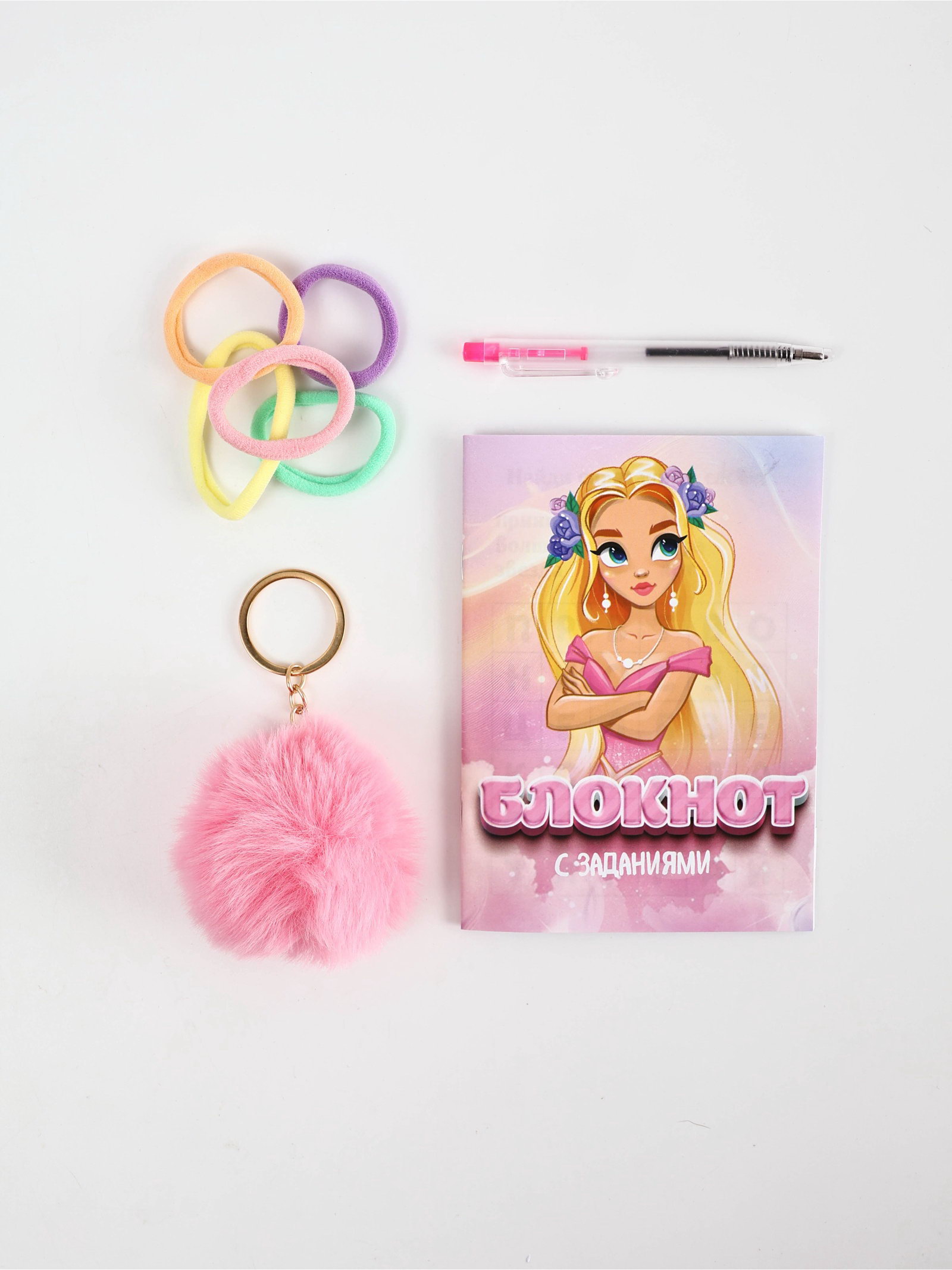 Подарочный набор: блокнот А6, 8 л, резиночки, брелок-пушистик, мини ручка "Принцесса", ArtFox, Россия