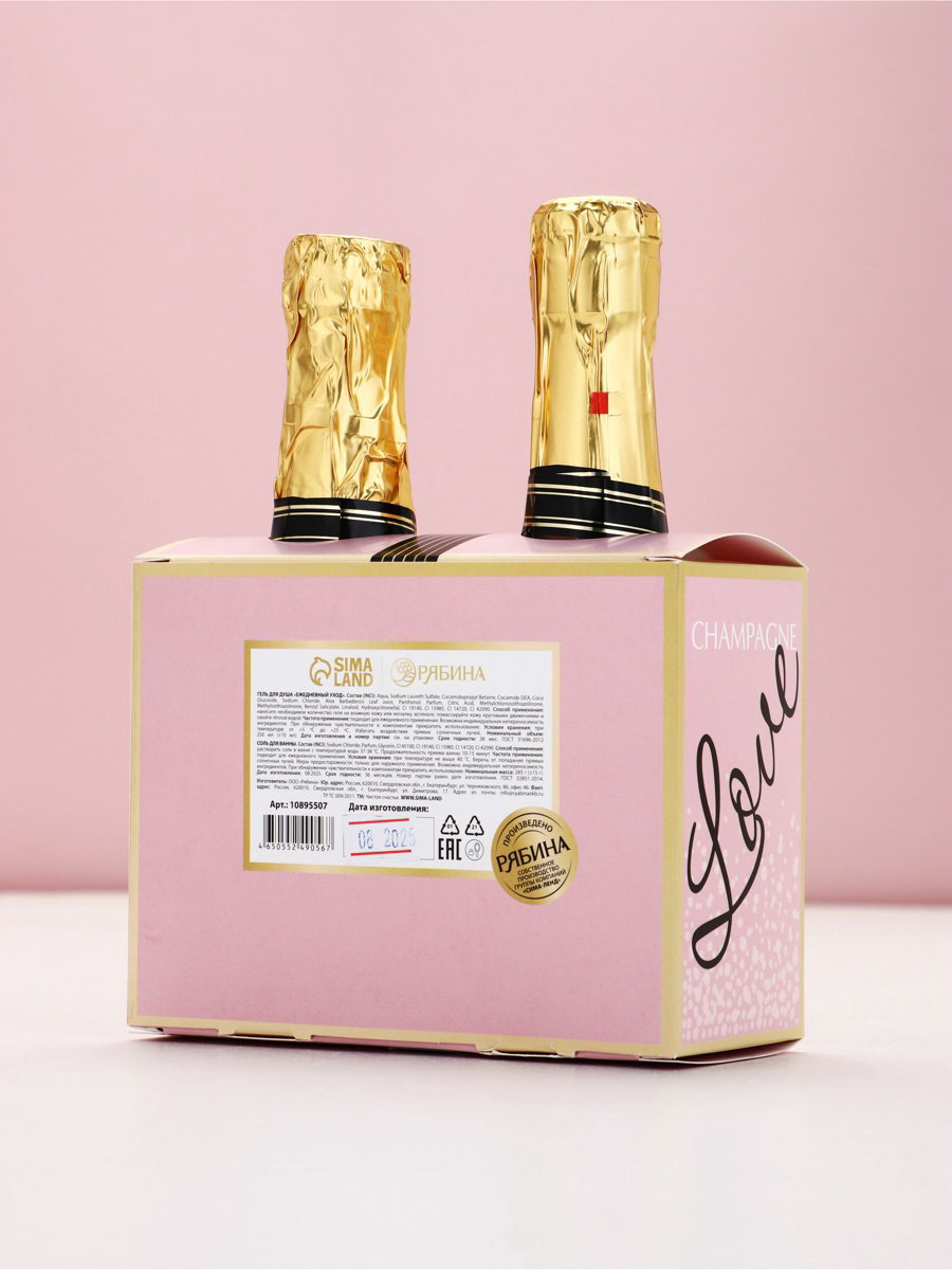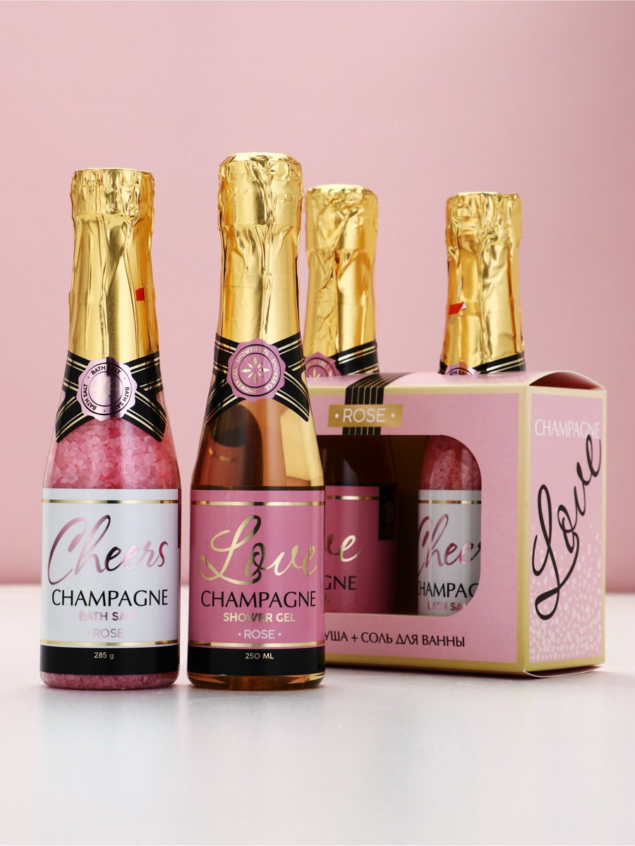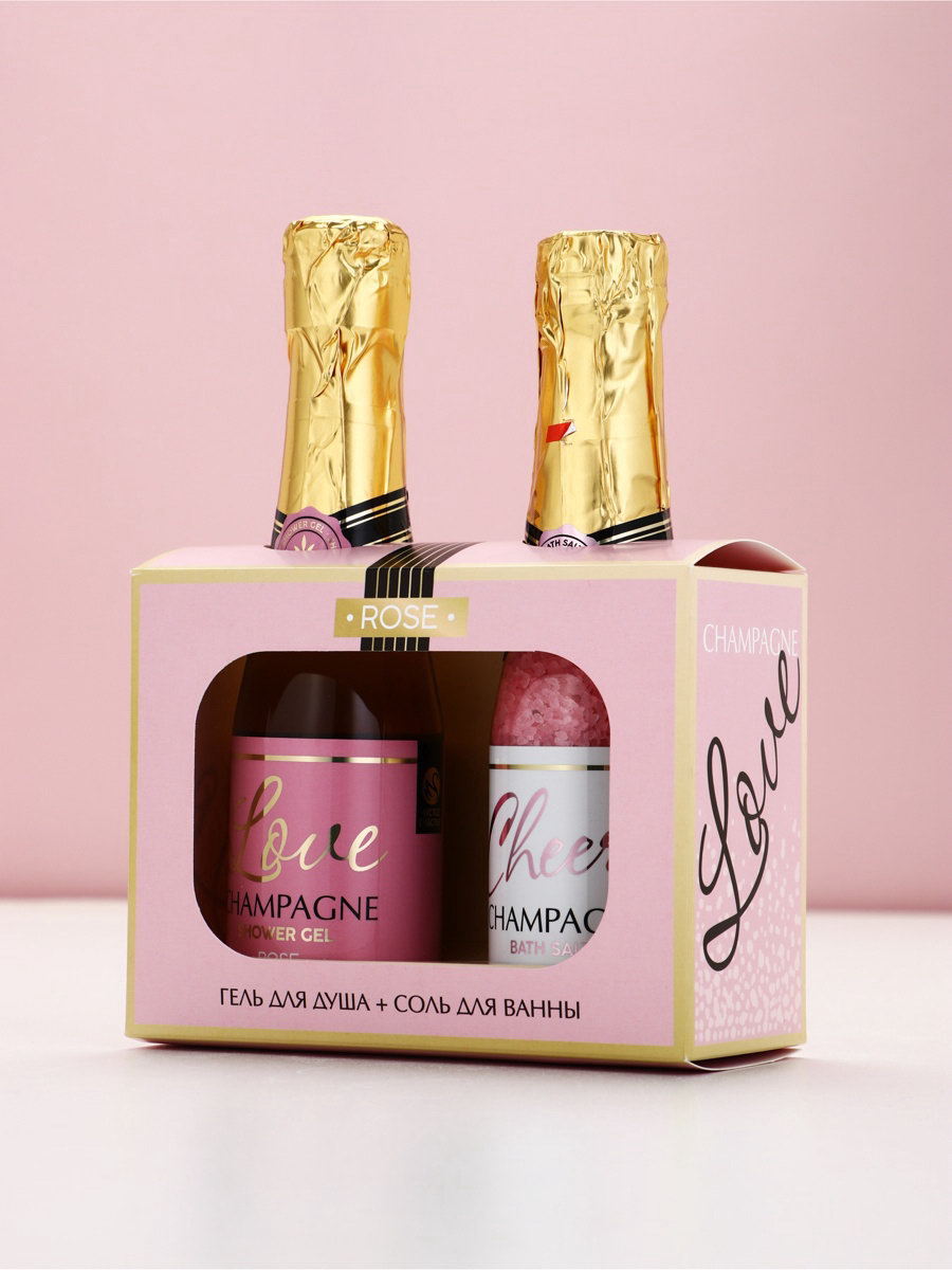Подарочный набор Love Champagne, гель для душа и соль для ванны во флаконах шампанское, Чистое Счастье, Чистое счастье, Россия