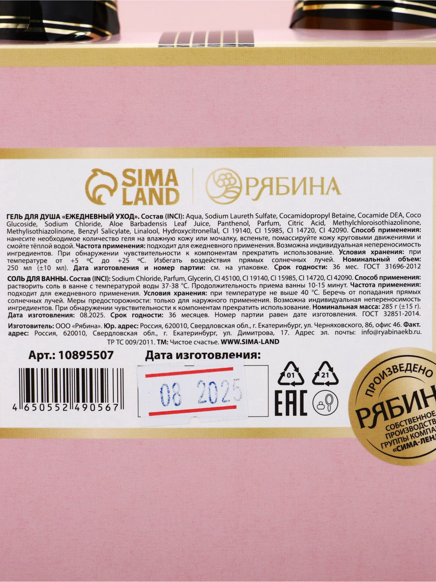 Возраст: Взрослый, Для взрослых Составляющие набора: Гель для душа, Соль для ванны Тематика праздника: 8 Марта, Универсальная тематика Размер упаковки: 15.5 x 20.5 x 7 см. tnved: 3401300000 Честный знак: Честный знак Область применения: Для тела Аромат: Роза Вид упаковки: Подарочная коробка Для кого: Для женщины Адресат: Без адресата В наборе, шт.: 2 Тематика подарка: Уходовая косметика | ||
