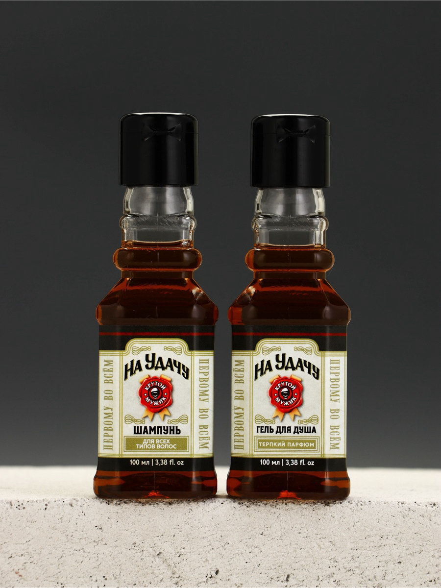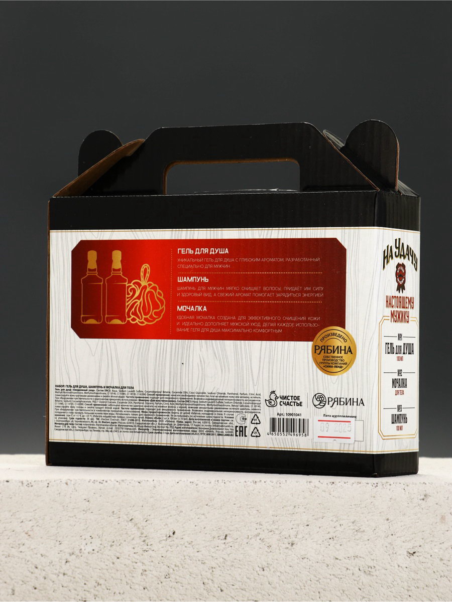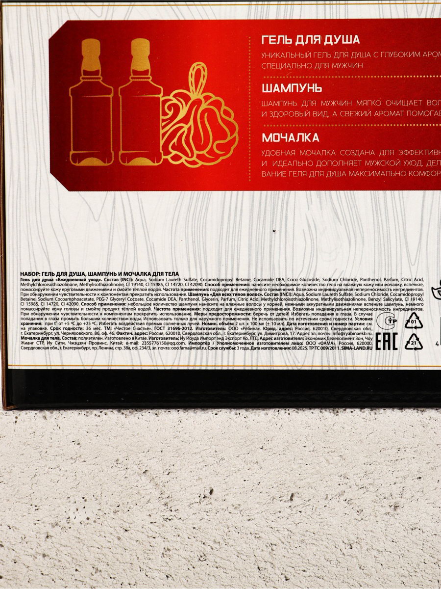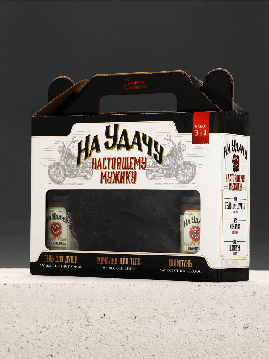 Подарочный набор мужской "На удачу", гель для душа, шампунь для волос, мочалка, Чистое счастье, Россия