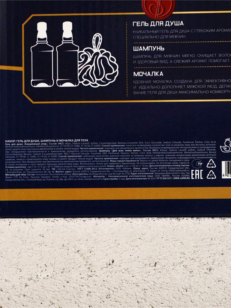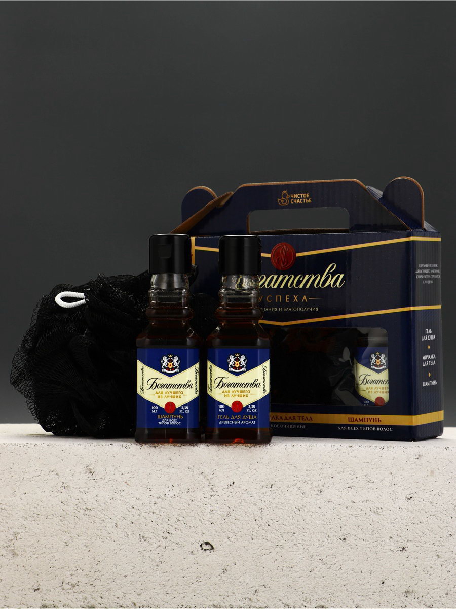 Подарочный набор мужской "Богатства", гель для душа, шампунь для волос, мочалка, Чистое счастье, Россия