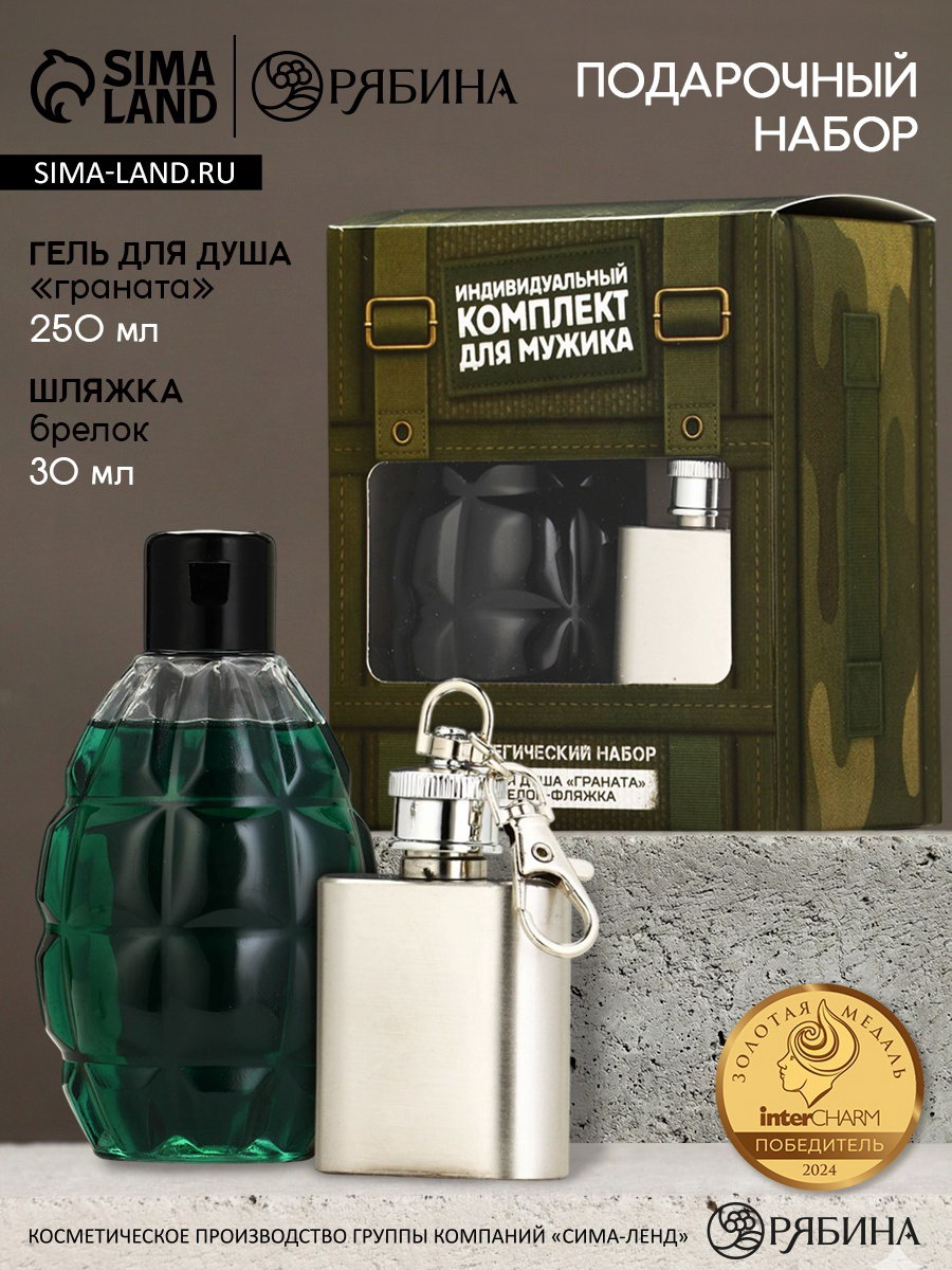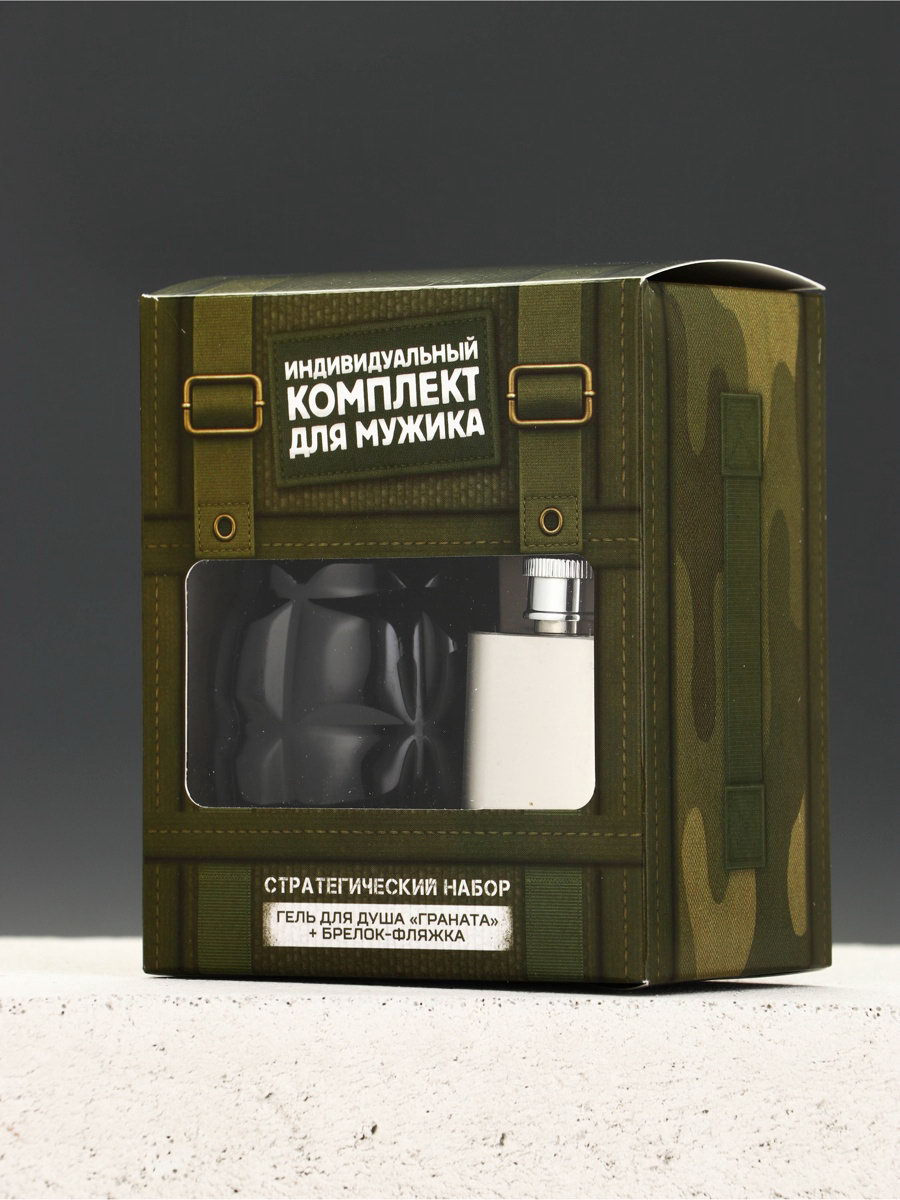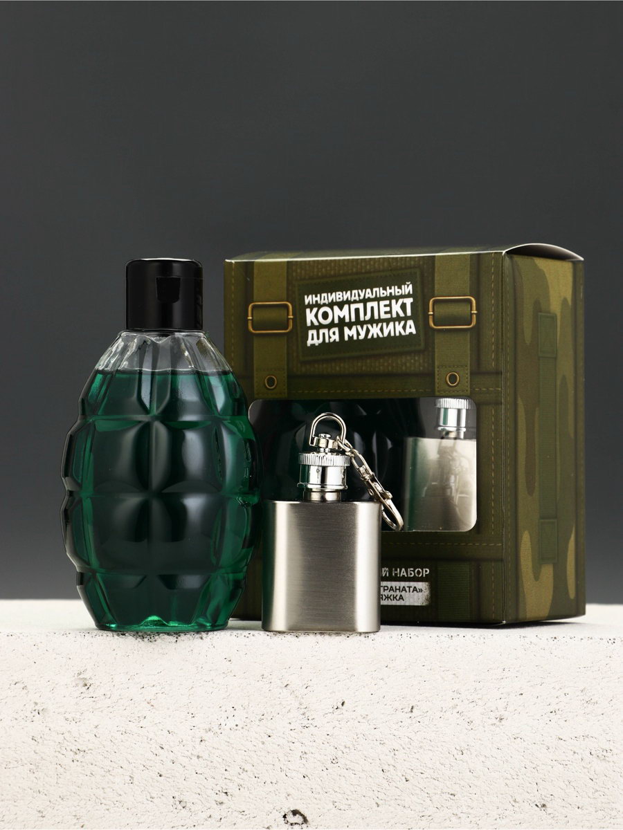 Подарочный набор "Комплект для мужика", гель для душа граната и брелок-фляжка, Чистое счастье, Россия