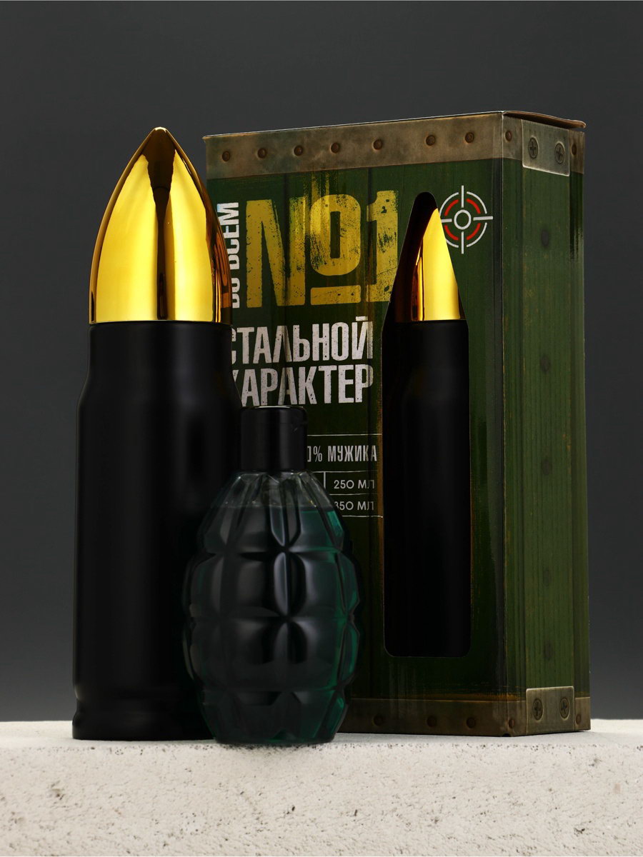 Подарочный набор мужской "№1", гель для душа граната и термос - пуля, Чистое счастье, Россия