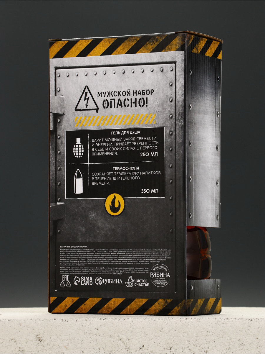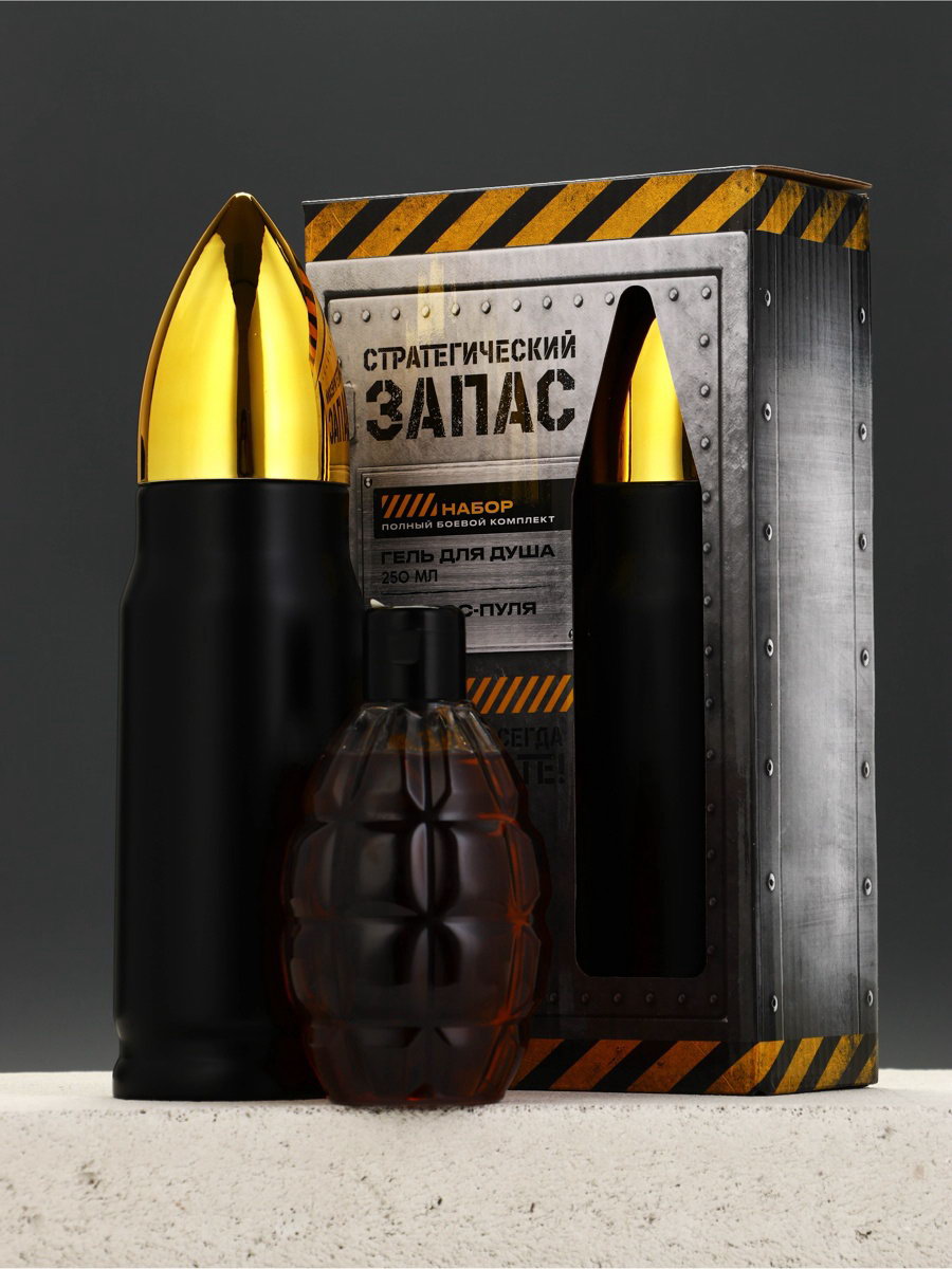 Подарочный набор мужской "Стратегический запас", гель для душа граната и термос - пуля, Чистое счастье, Россия