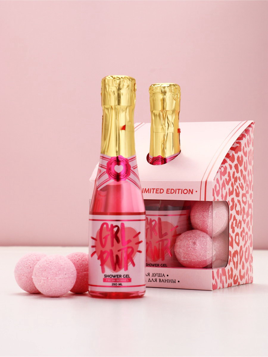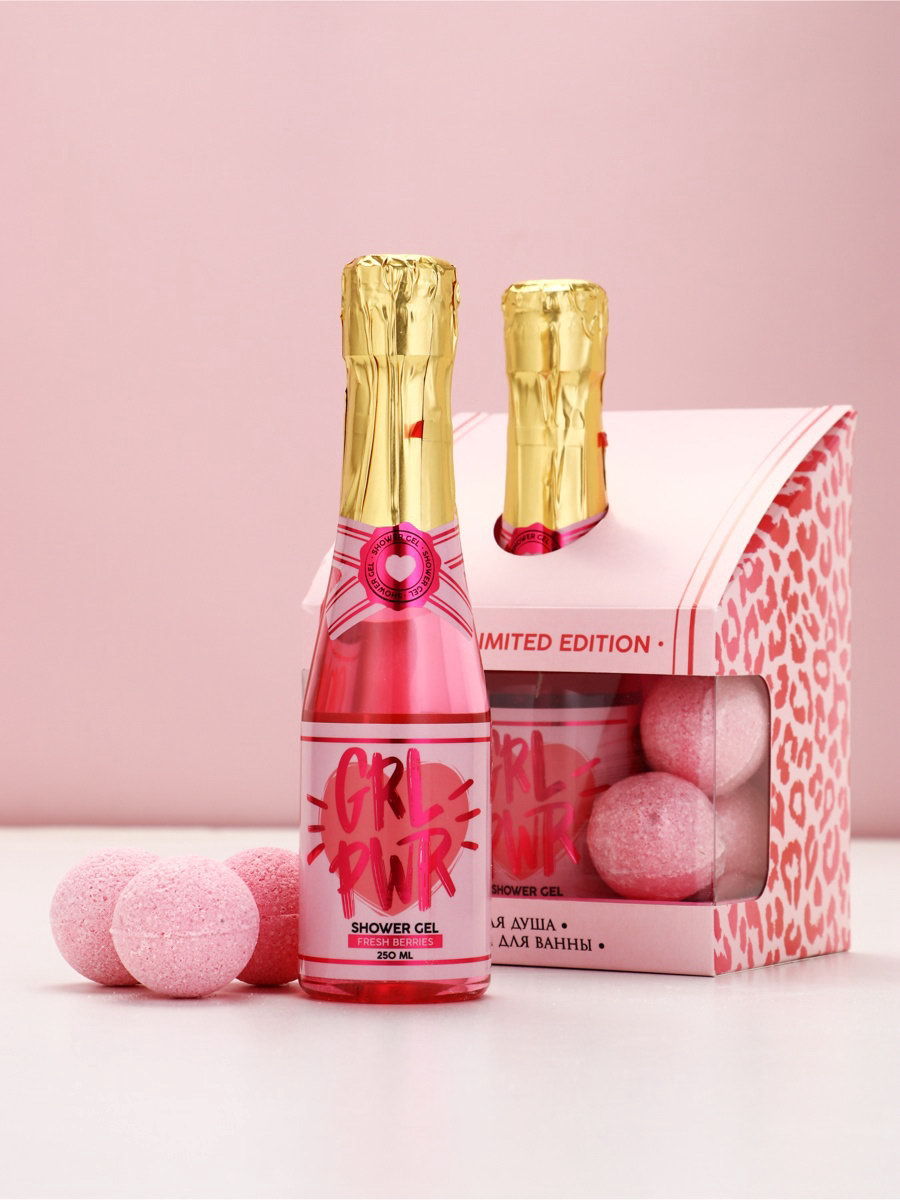Подарочный набор GRL, гель для душа шампанское и бомбочки для ванны, Чистое Счастье, Чистое счастье, Россия