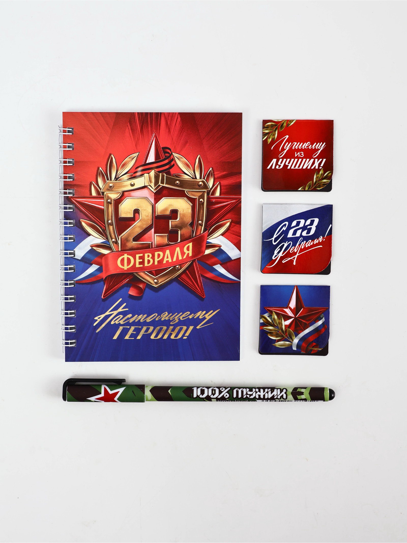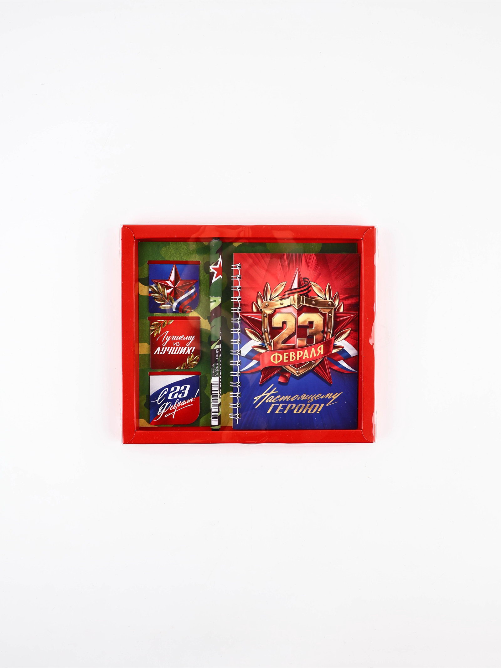 Подарочный набор: блокнот А6, 40 л, магнитные закладки, ручка "С 23 февраля", ArtFox, Россия