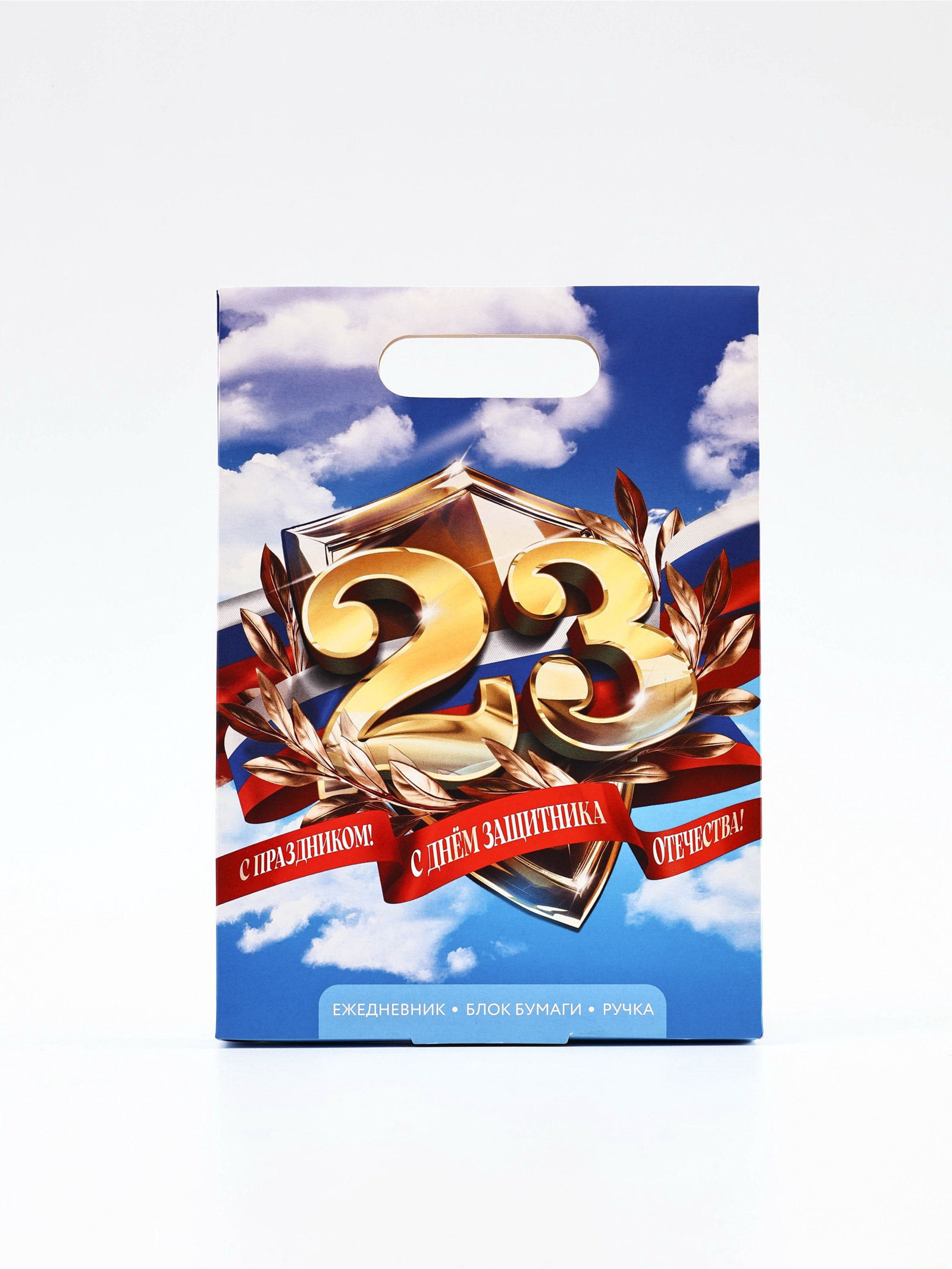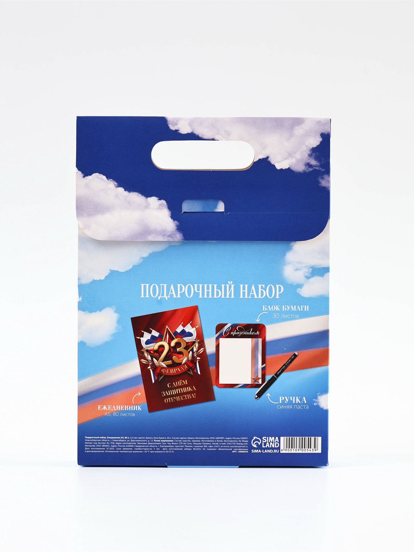 Подарочный набор, ежедневник А5, 80 л, блок бумаги, ручка "С 23 февраля. Небо", ArtFox, Россия