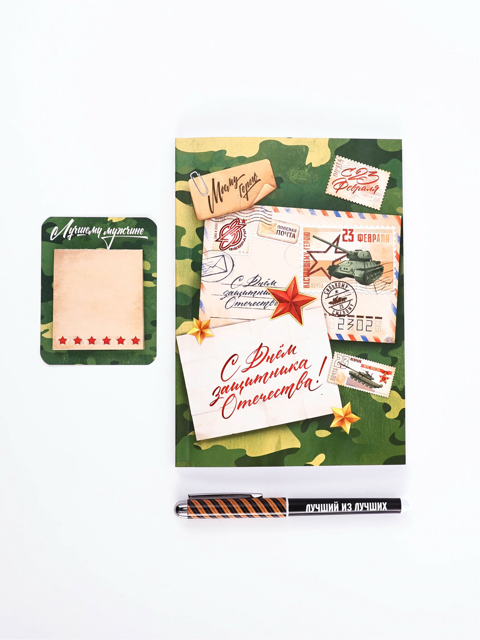 Подарочный набор, ежедневник А5, 80 л, блок бумаги, ручка "С 23 февраля", ArtFox, Россия