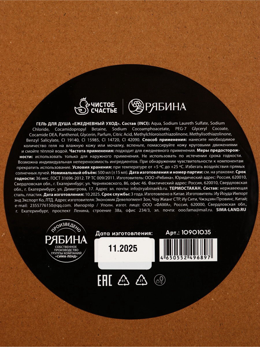 Подарочный набор, гель для душа 500 мл и термостакан, Чистое счастье, Россия