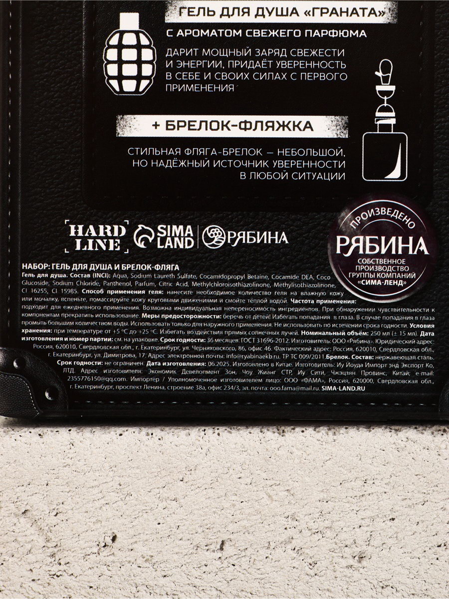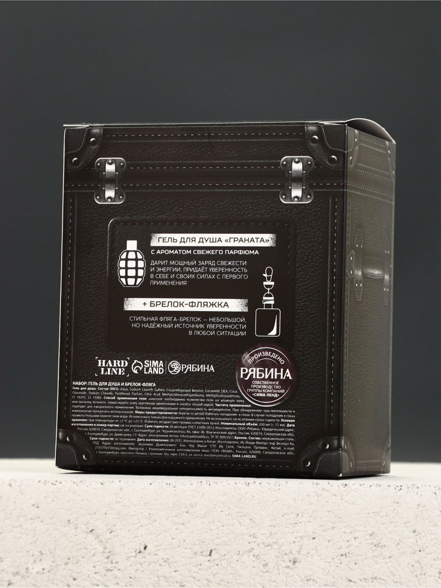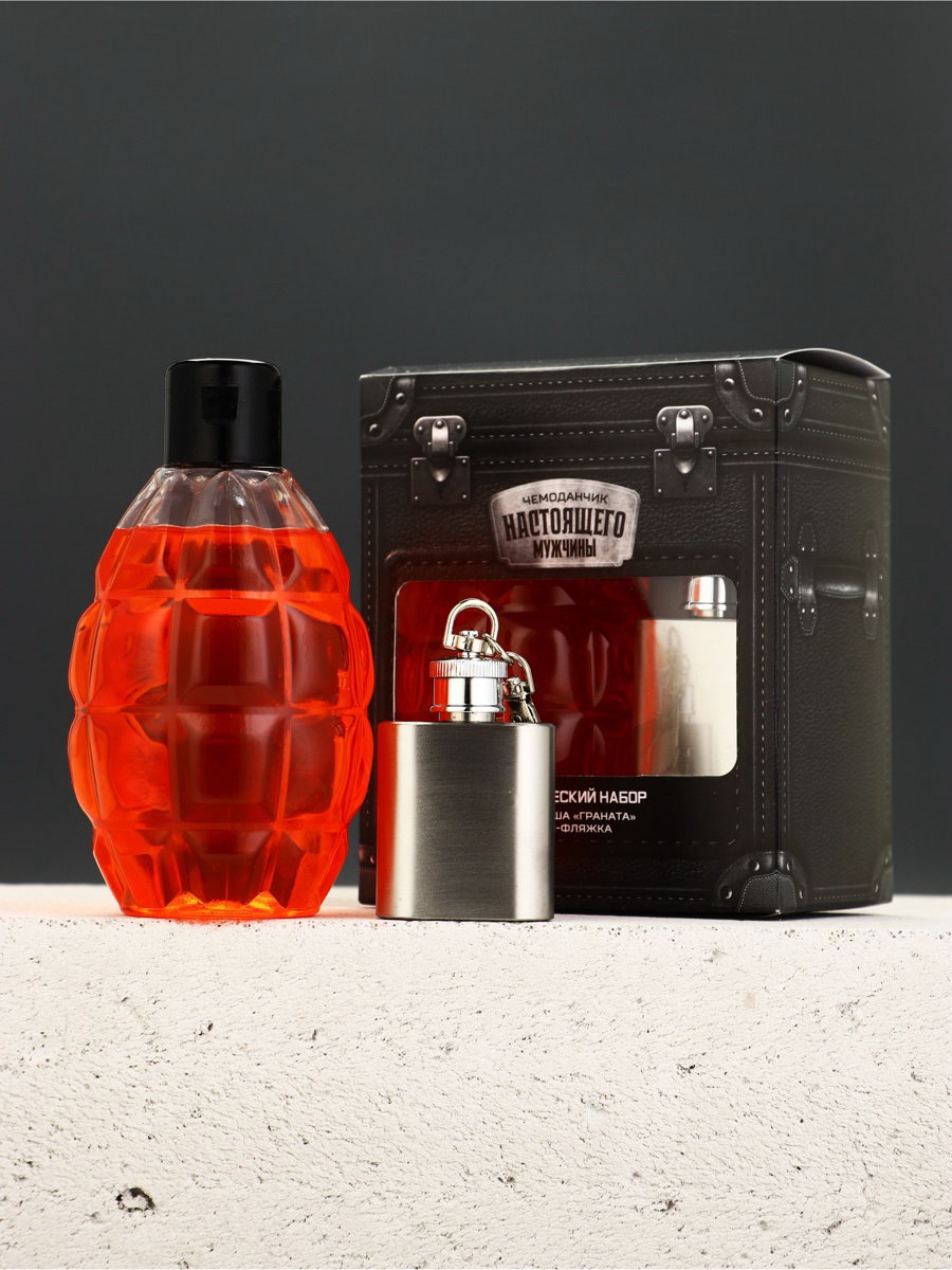 Подарочный набор мужской: гель для душа граната 250 мл и брелок фляжка, Чистое счастье, Россия