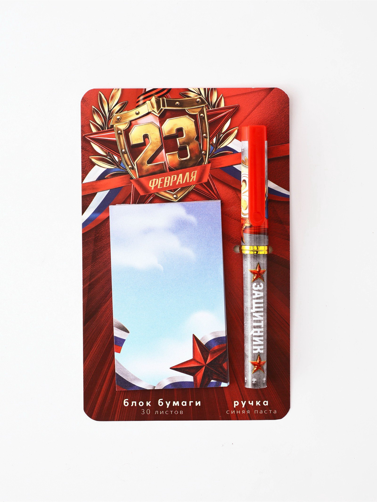 Подарочный набор, ручка шариковая, блок бумаги, 30 л, отрывной "23 Февраля", ArtFox, Россия