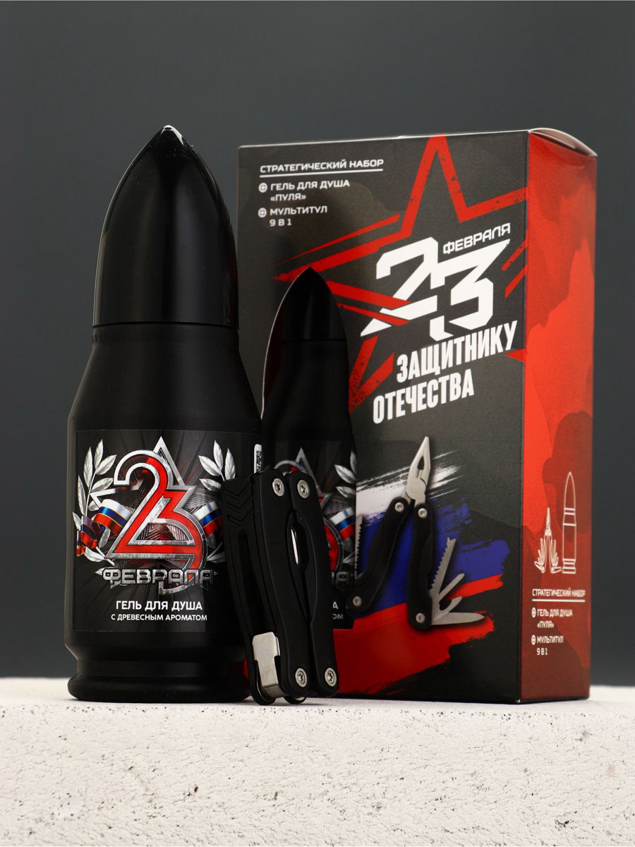 Подарочный набор "Защитнику отечества", гель для душа 200 мл во флаконе пуля и мультитул, Чистое счастье, Россия
