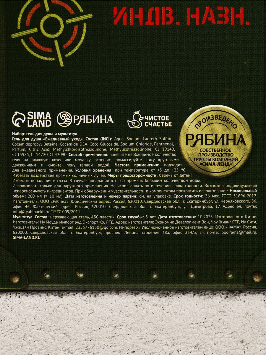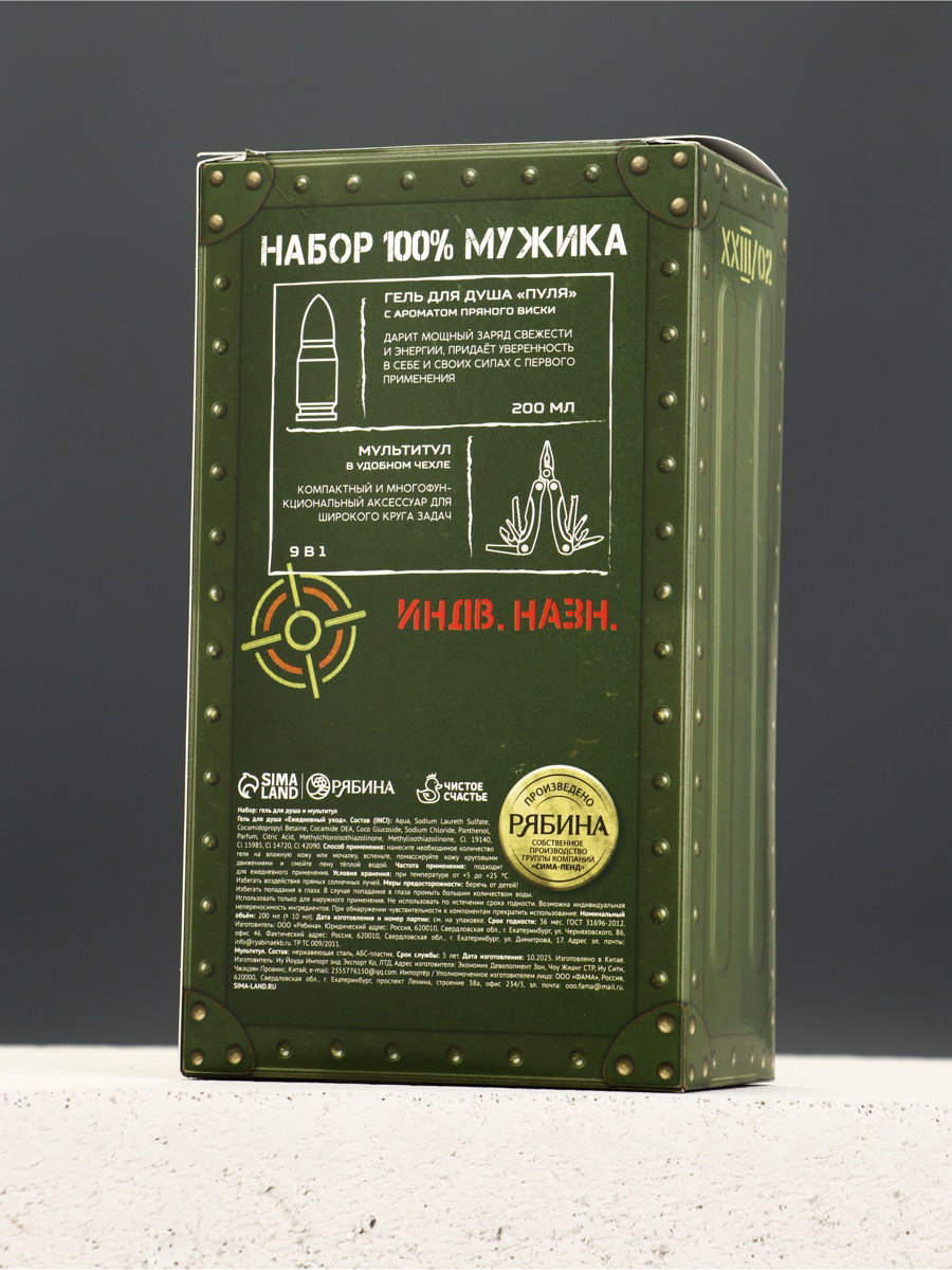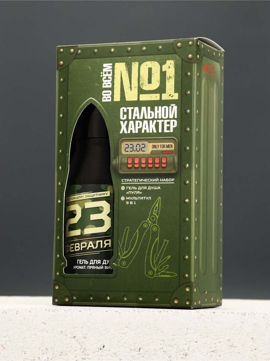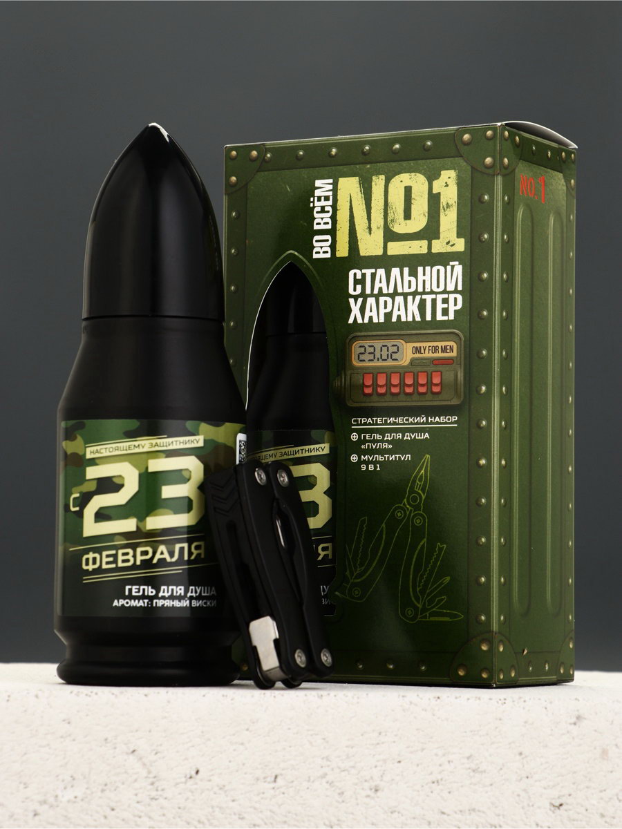 Подарочный набор "Стальной характер", гель для душа 200 мл во флаконе пуля и мультитул, Чистое счастье, Россия