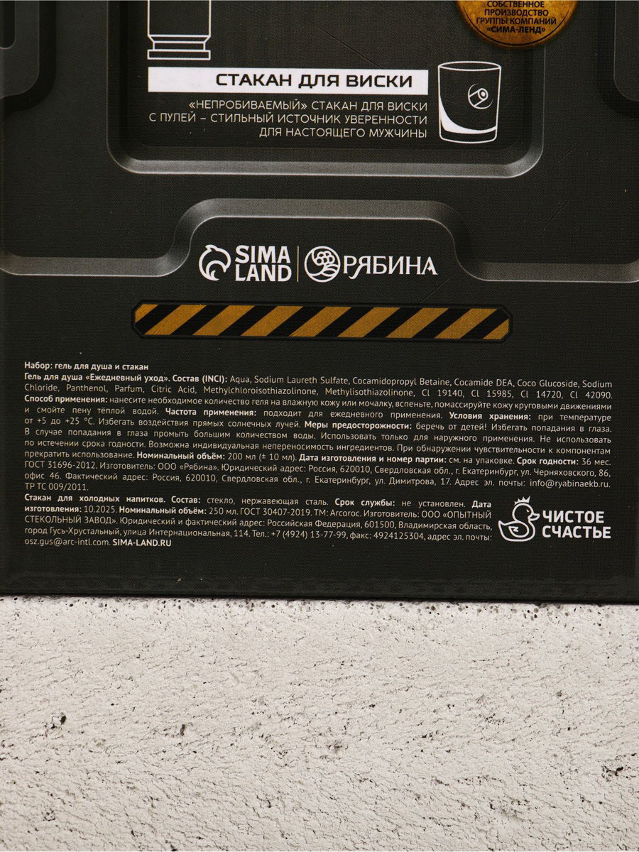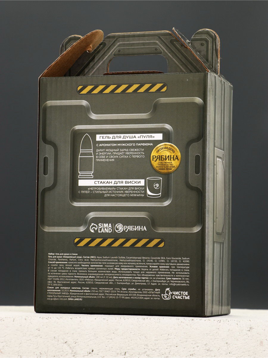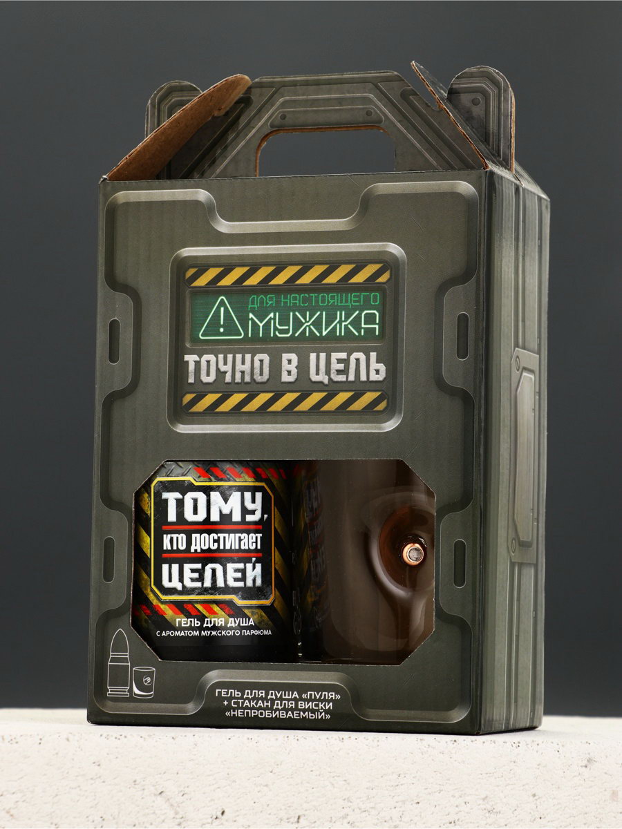 Подарочный набор "Для настоящего мужика", гель для душа 200 мл во флаконе пуля и стакан, Чистое счастье, Россия