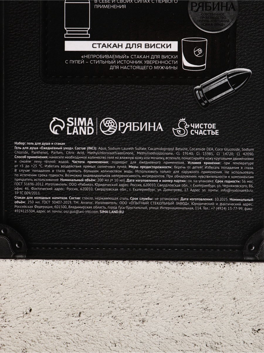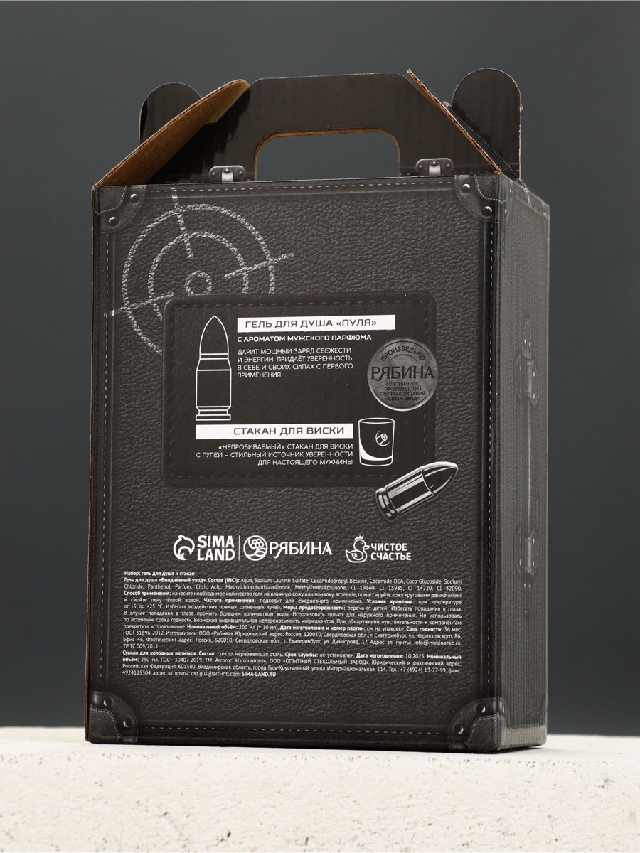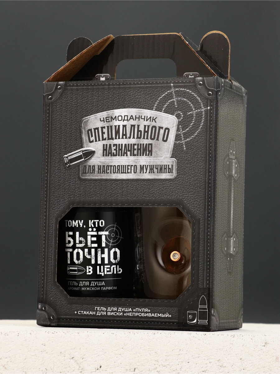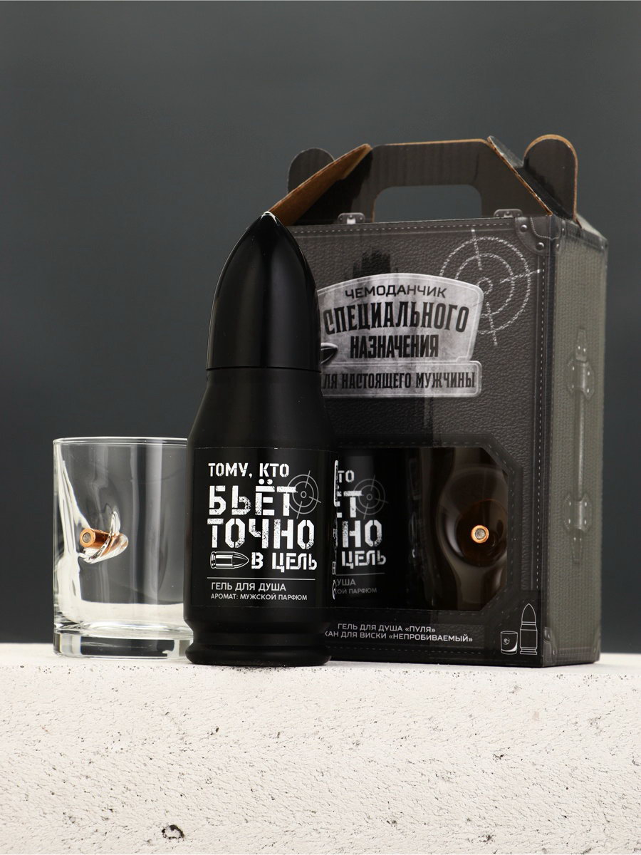Подарочный набор "Специального назначения", гель для душа 200 мл во флаконе пуля и стакан, Чистое счастье, Россия