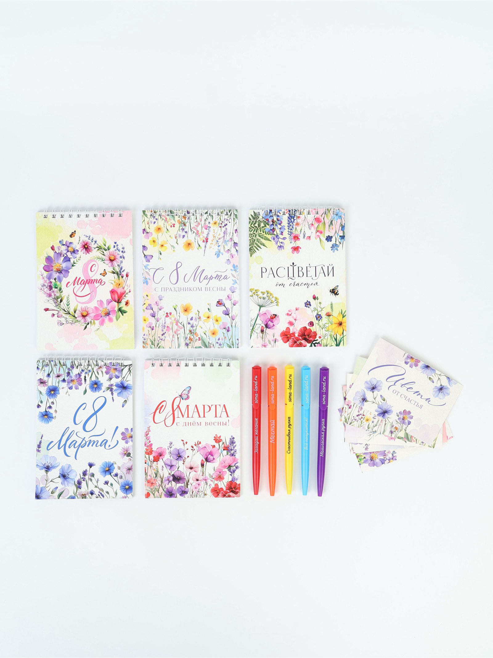 Подарочный набор, 5 ручек, 5 открыток, 5 блокнотов "С 8 марта", ArtFox, Россия