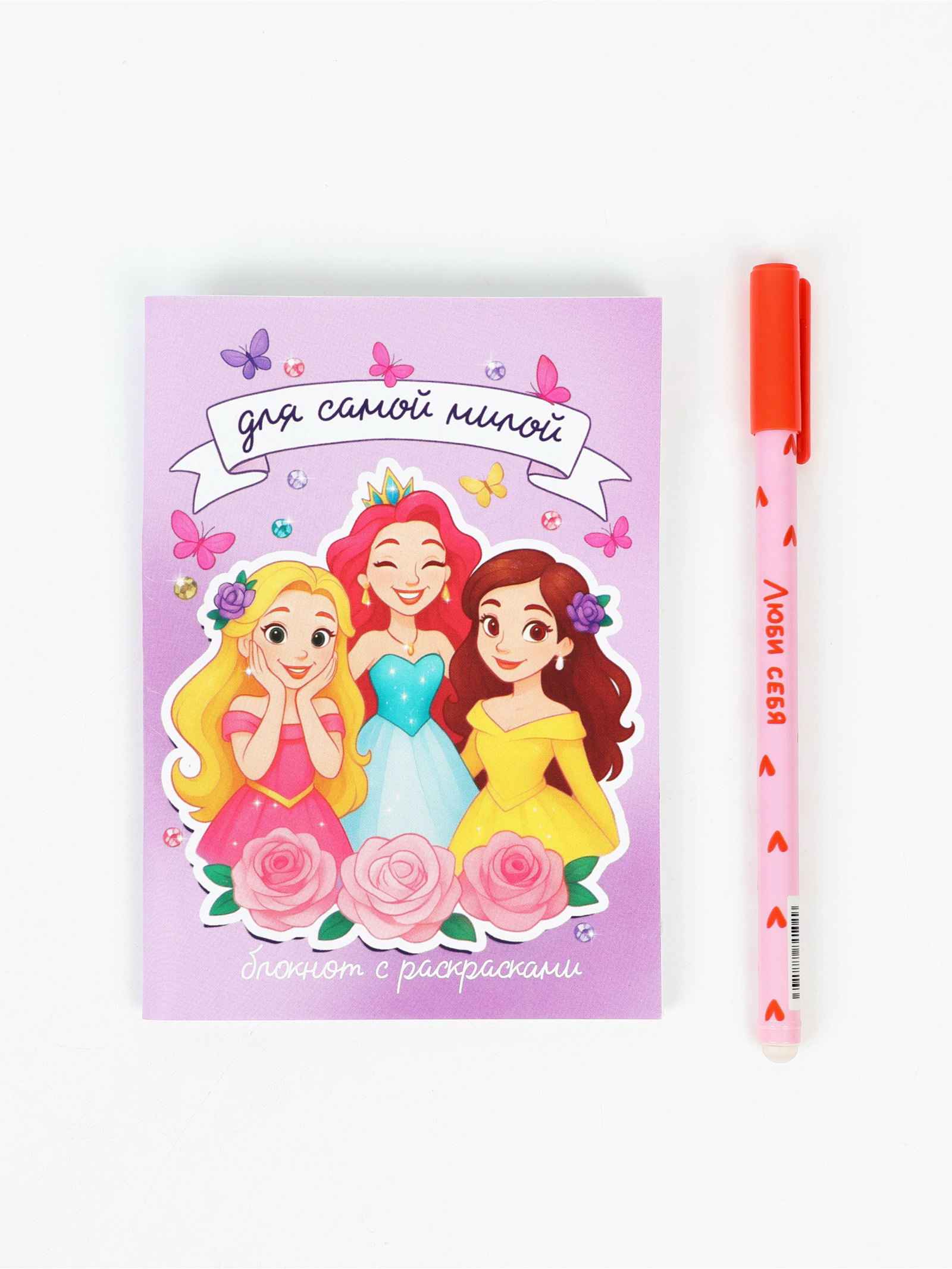 Подарочный набор: блокнот раскраска А6, 32 ли ручка пиши-стирай "Подружки", Россия