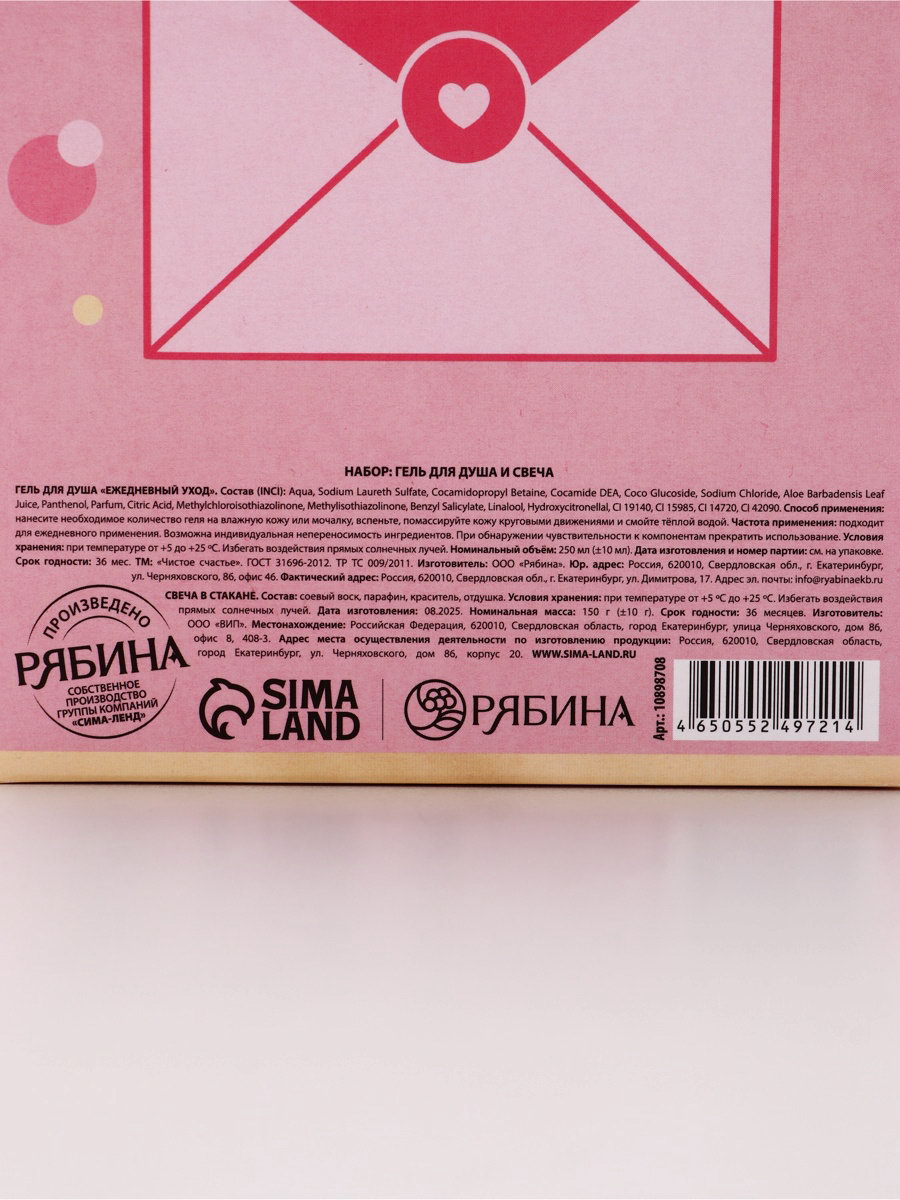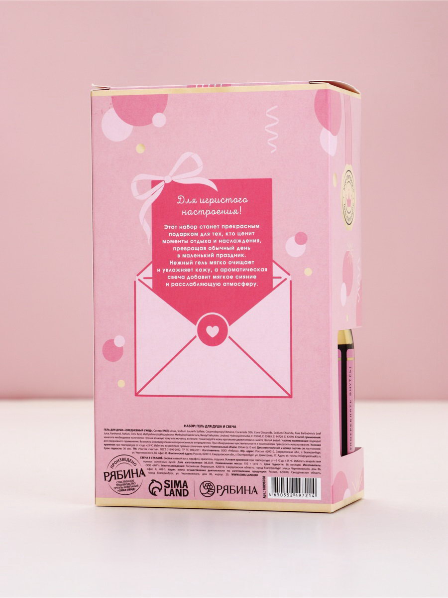 Подарочный набор: гель для душа шампанское 250 мл и свеча, аромат роза, Чистое Счастье, Чистое счастье, Россия