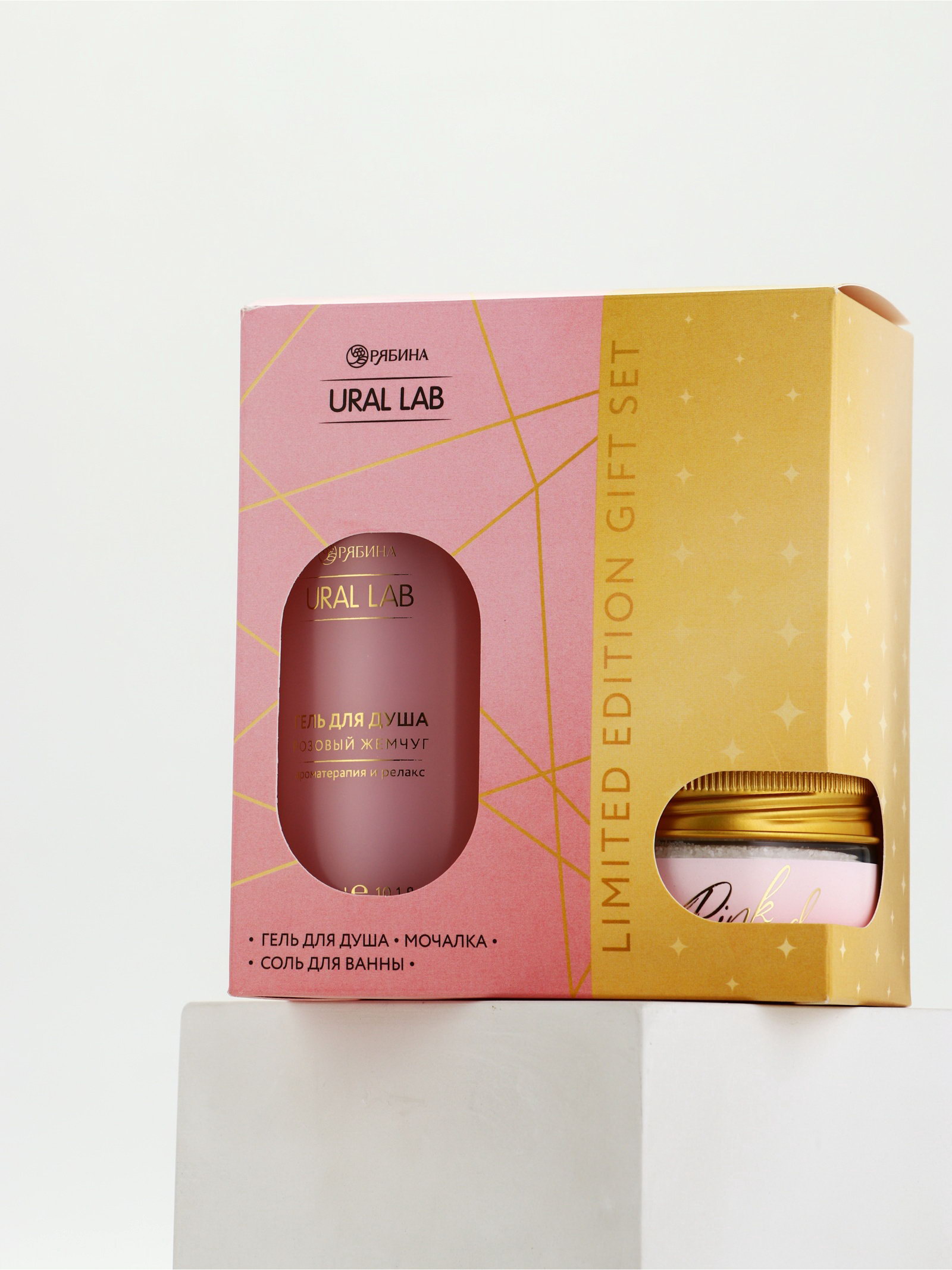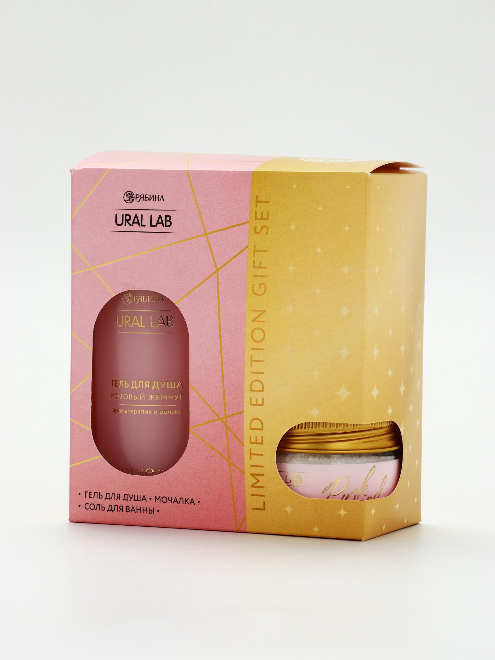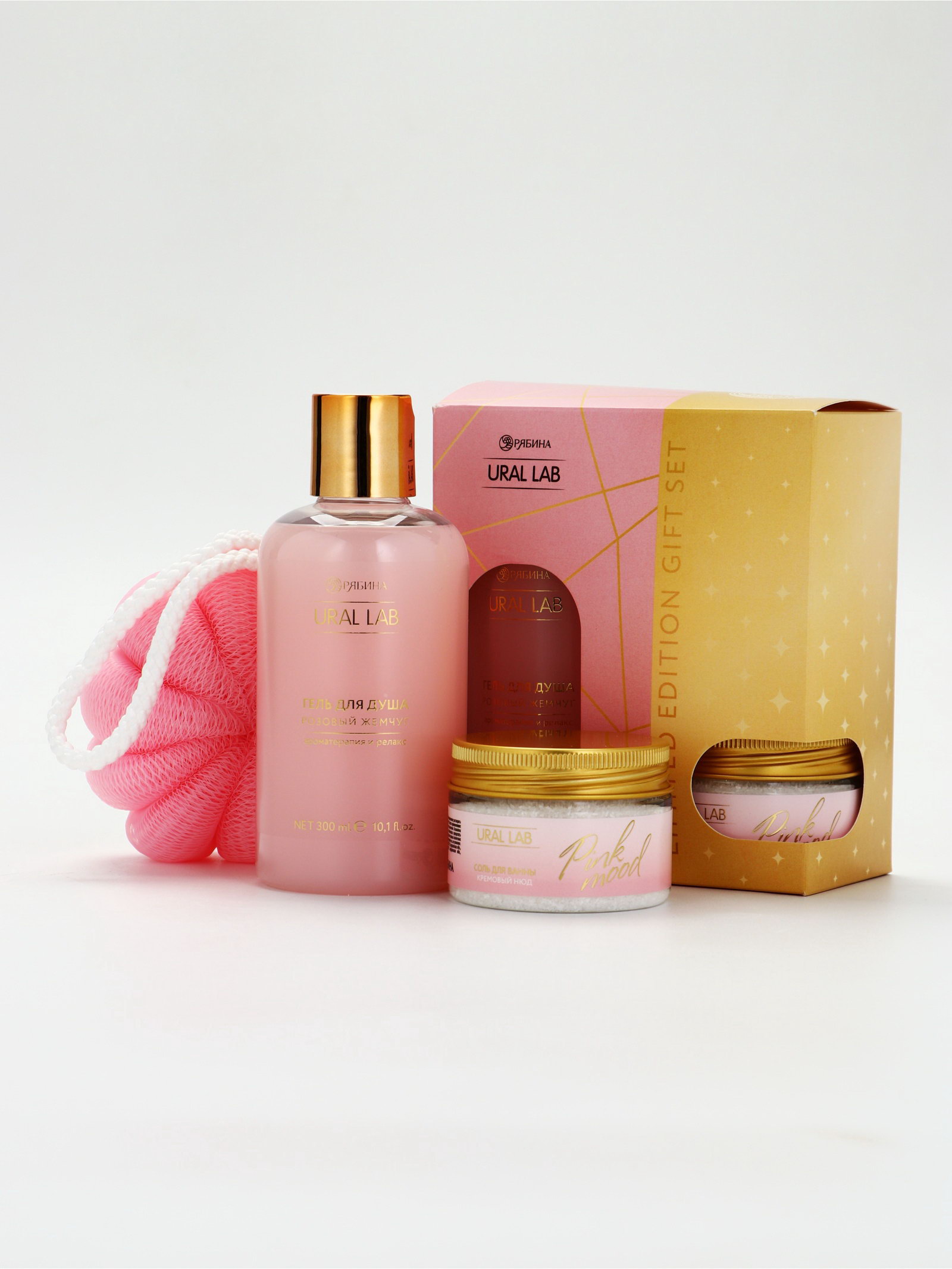 Подарочный набор: гель для душа, соль в банке и мочалка ракушка, URAL LAB, Россия