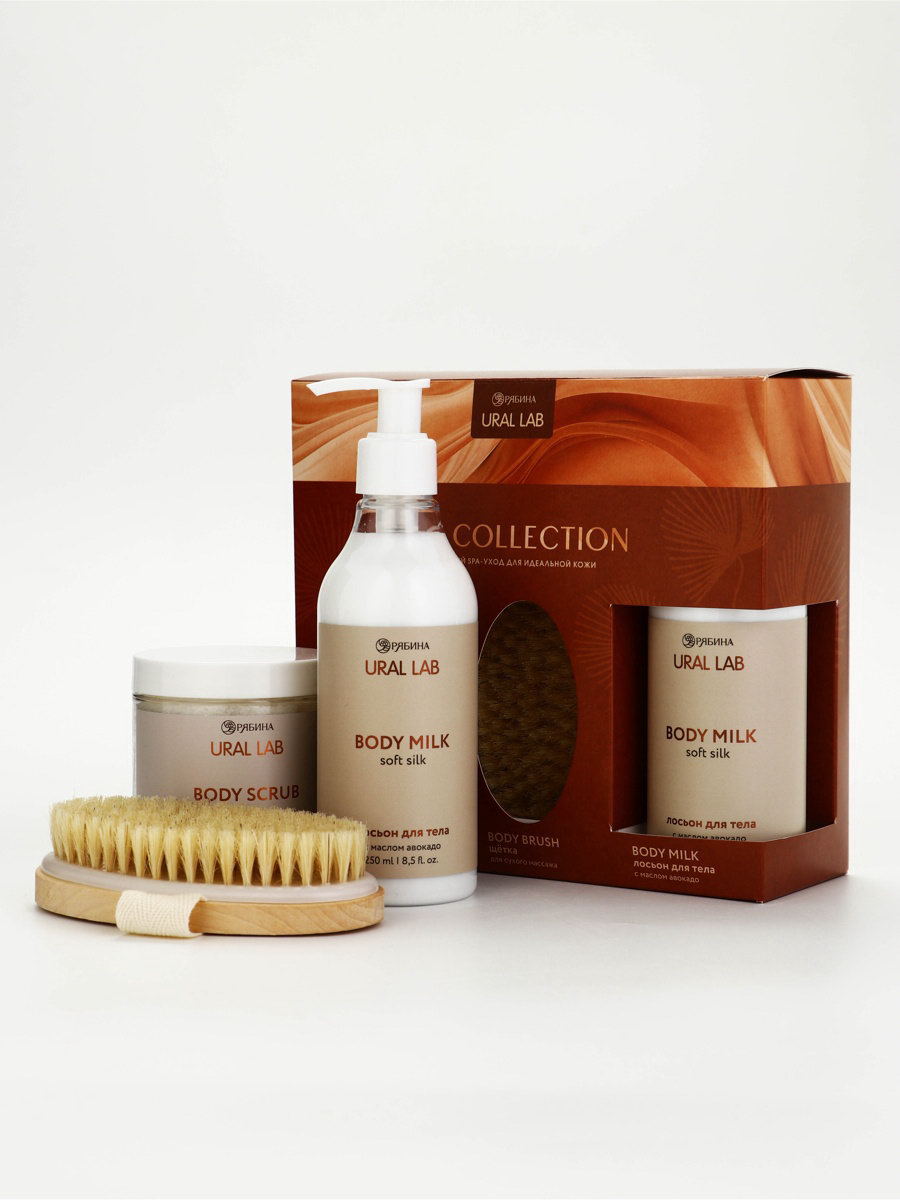 Подарочный набор: крем для тела, скраб и щетка для сухого массажа, URAL LAB, Россия