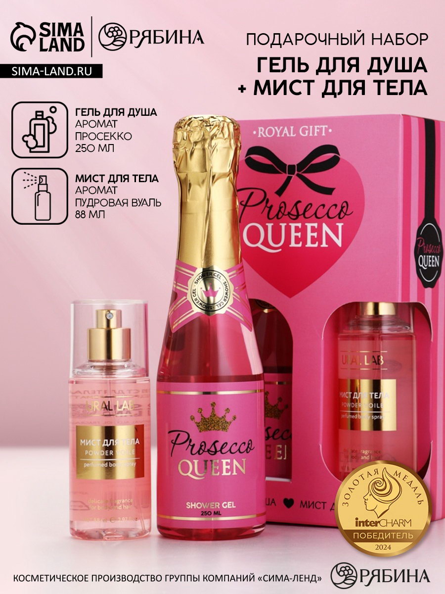 Подарочный набор "Королева", гель для душа шампанское и мист для тела, Чистое Счастье, Чистое счастье, Россия