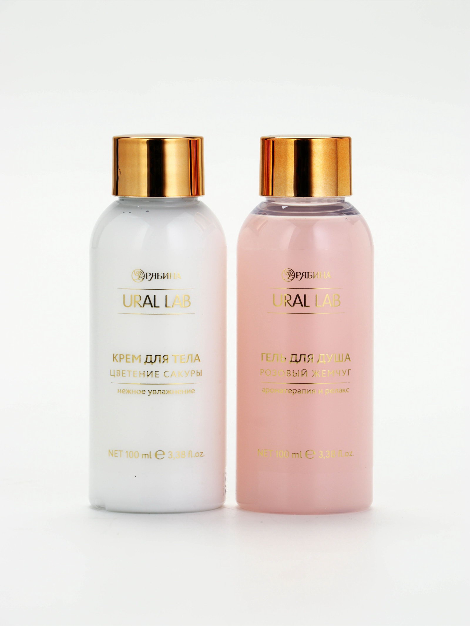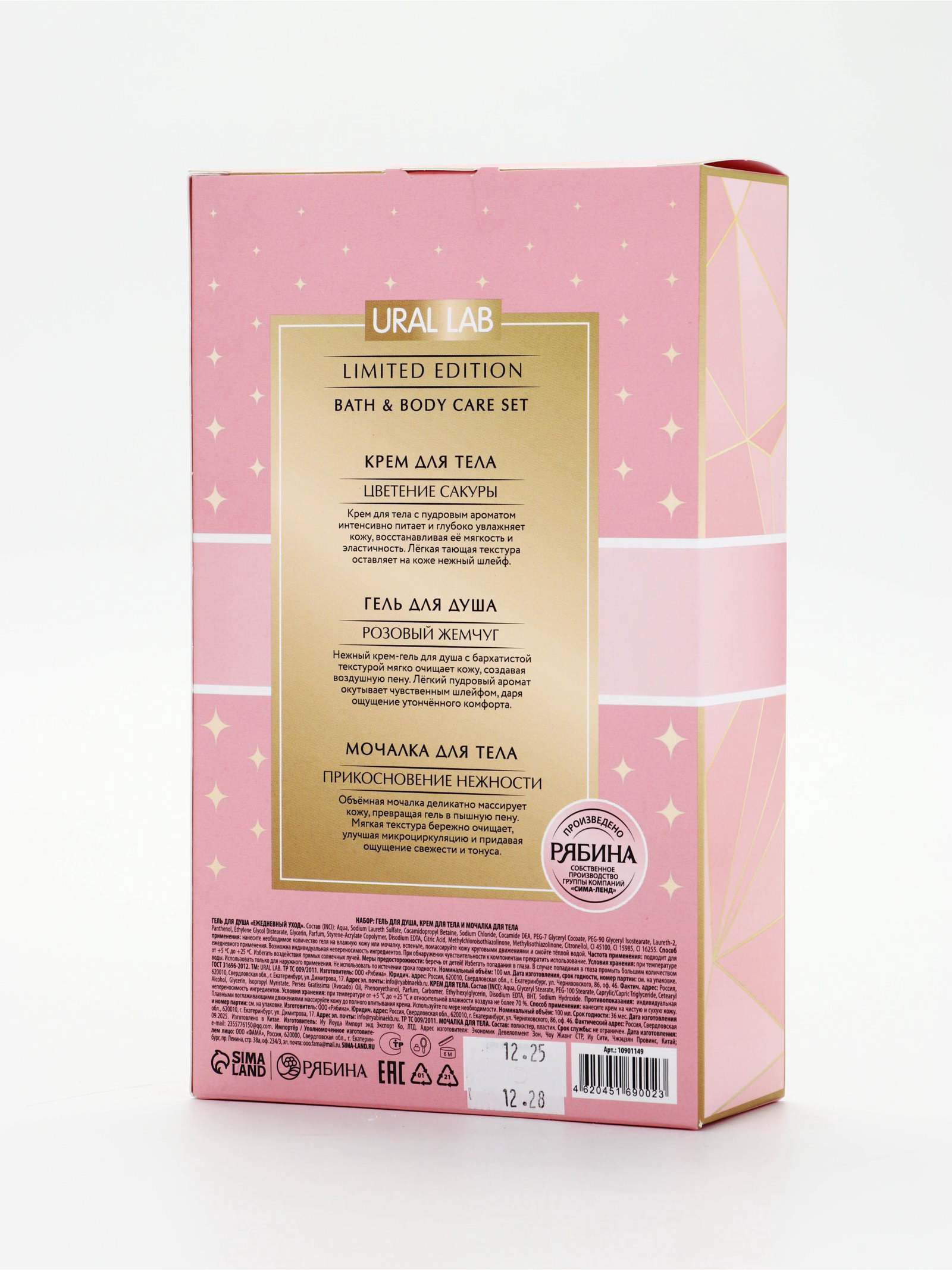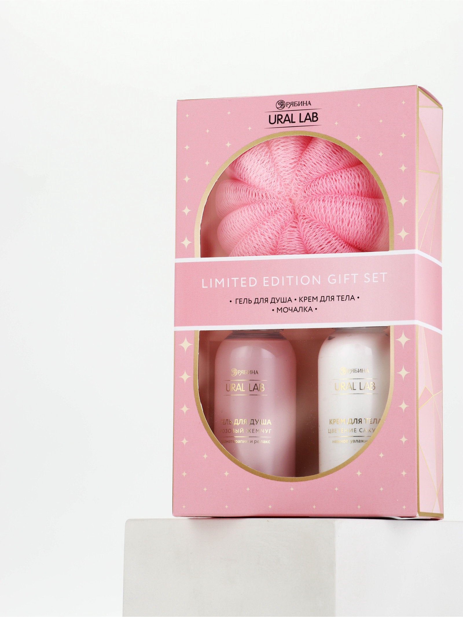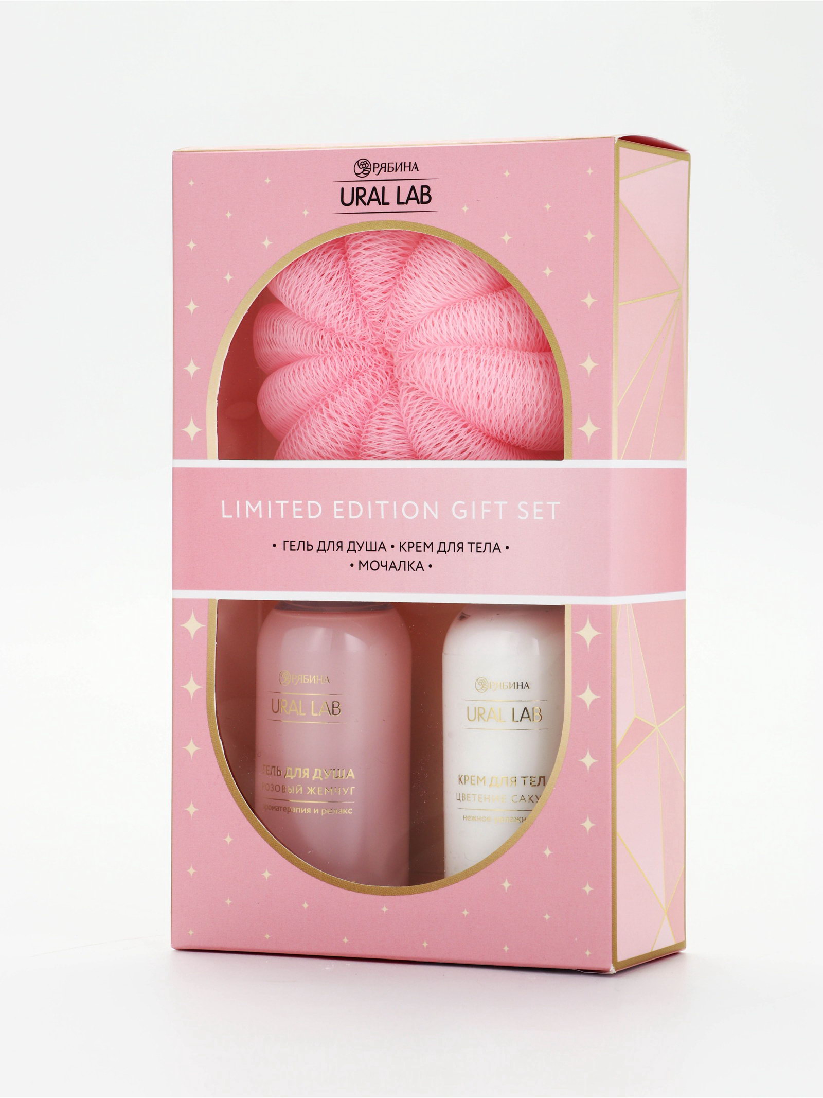 Подарочный набор: гель для душа и крем для тела 2 шт x 100 мл, мочалка, URAL LAB, Россия