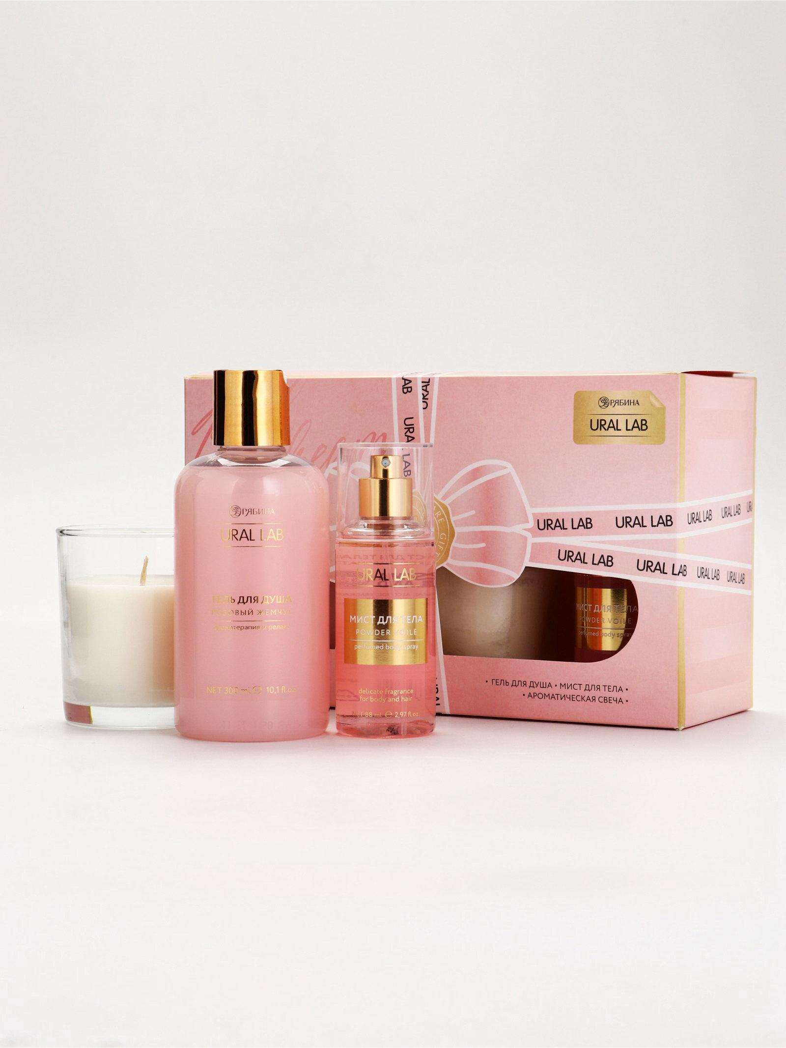 Подарочный набор женский Nude Mood, гель для душа, ароматическая свеча, мист для тела, URAL LAB, Россия