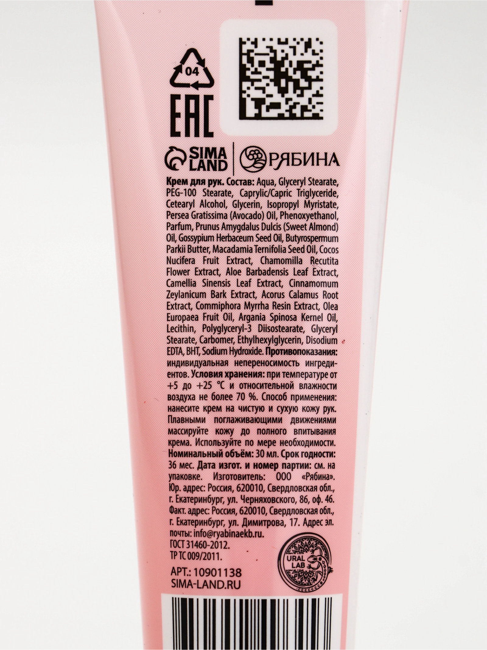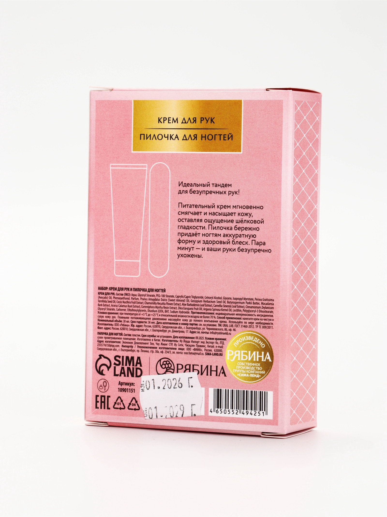 Подарочный набор: крем для рук 30 мл и пилочка, 30 мл., URAL LAB, Россия