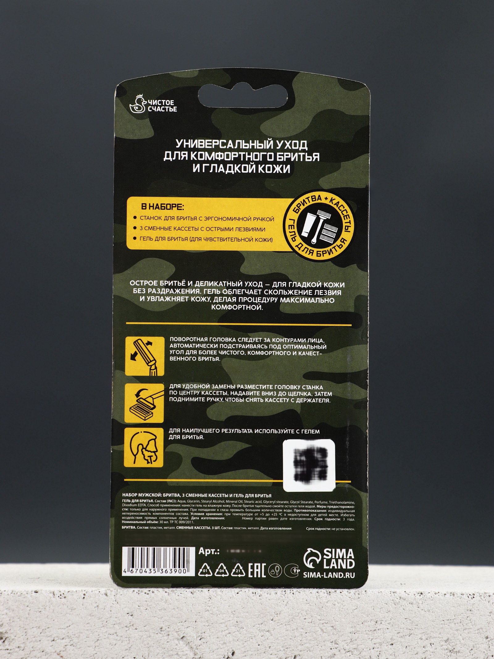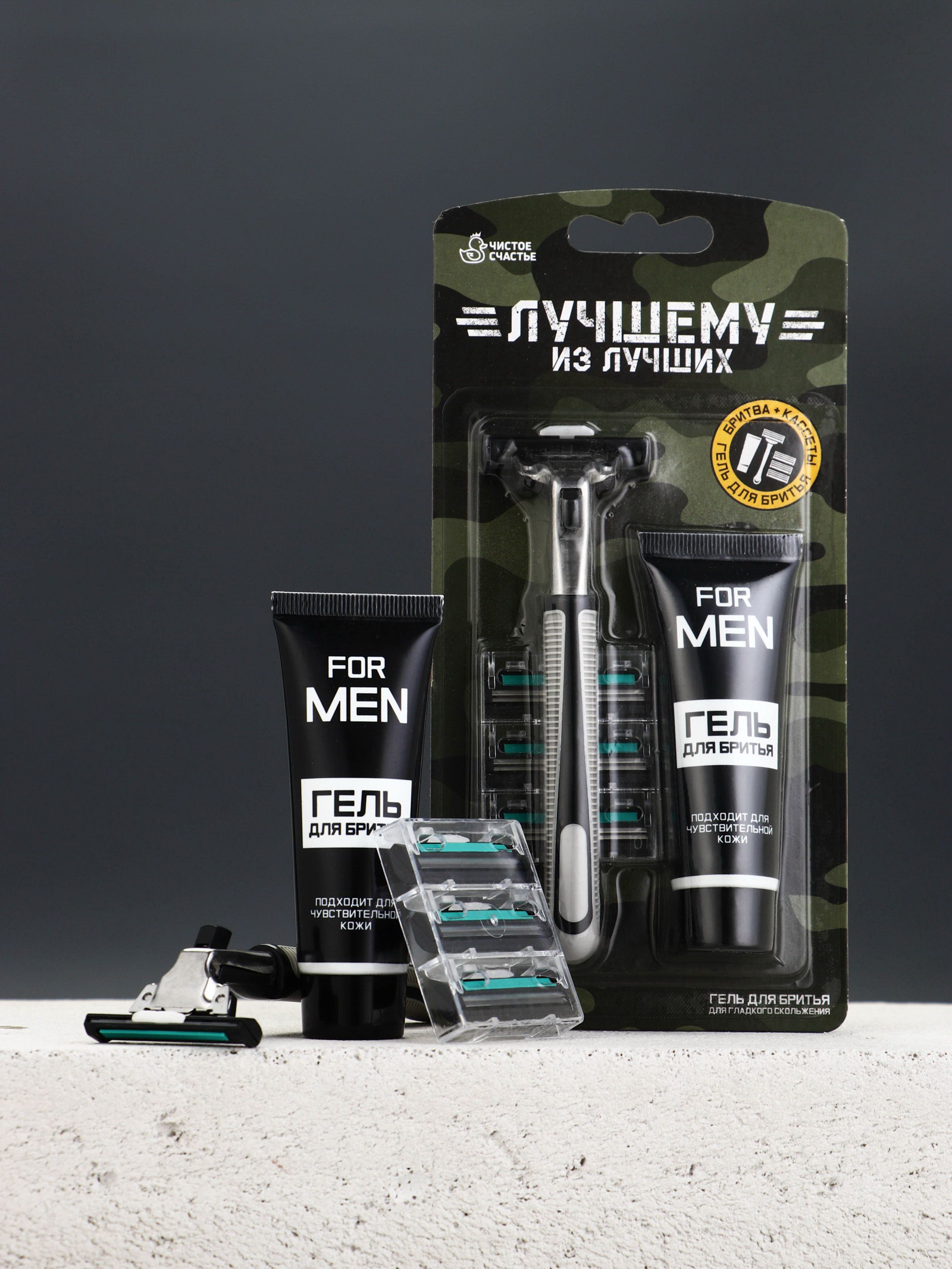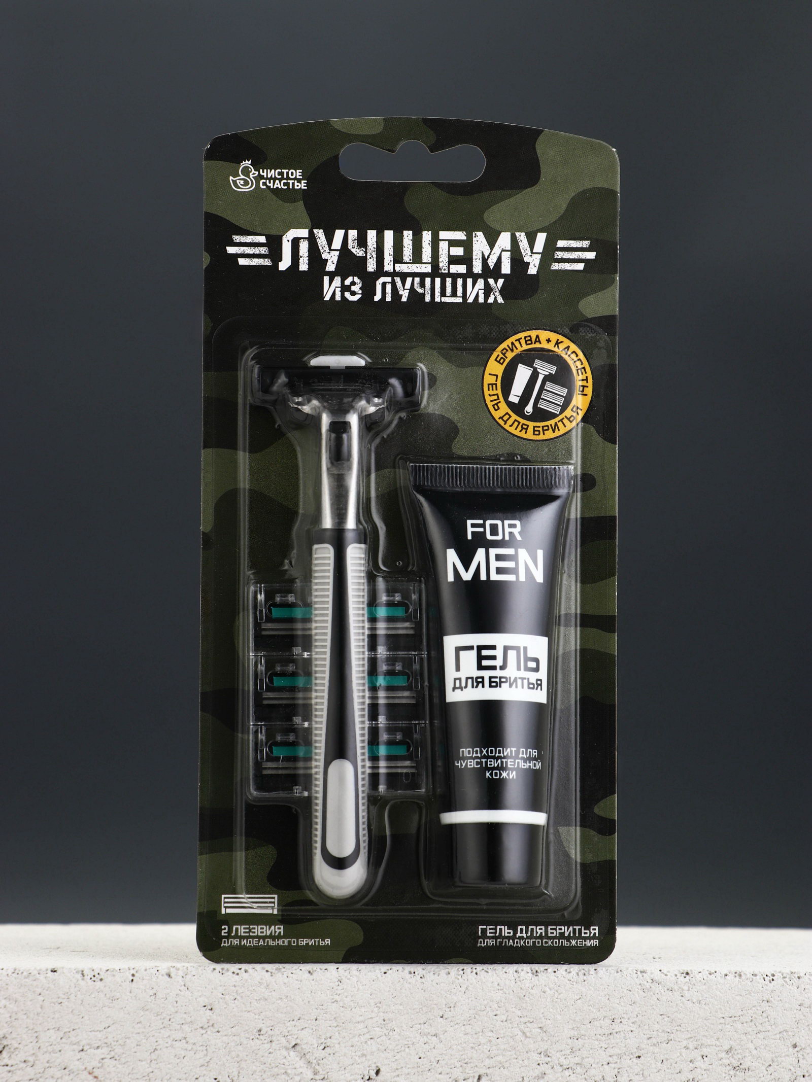 Подарочный набор "Лучшему", станок для бритья, 3 сменные головки, гель для бритья, 10x15x2 см., Чистое счастье, Китай