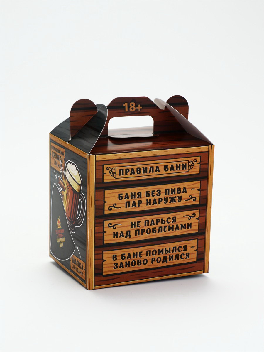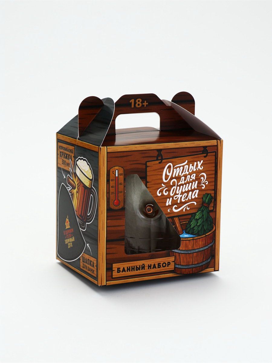Подарочный набор "Здоровый дух", кружка для пива 500 мл, шапка банная, Сима-ленд, Россия