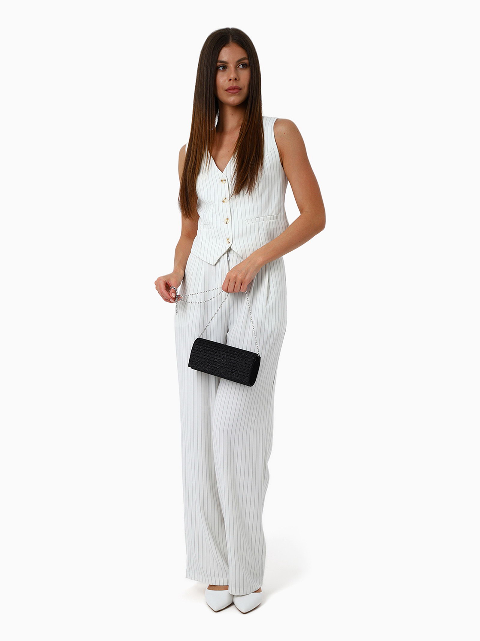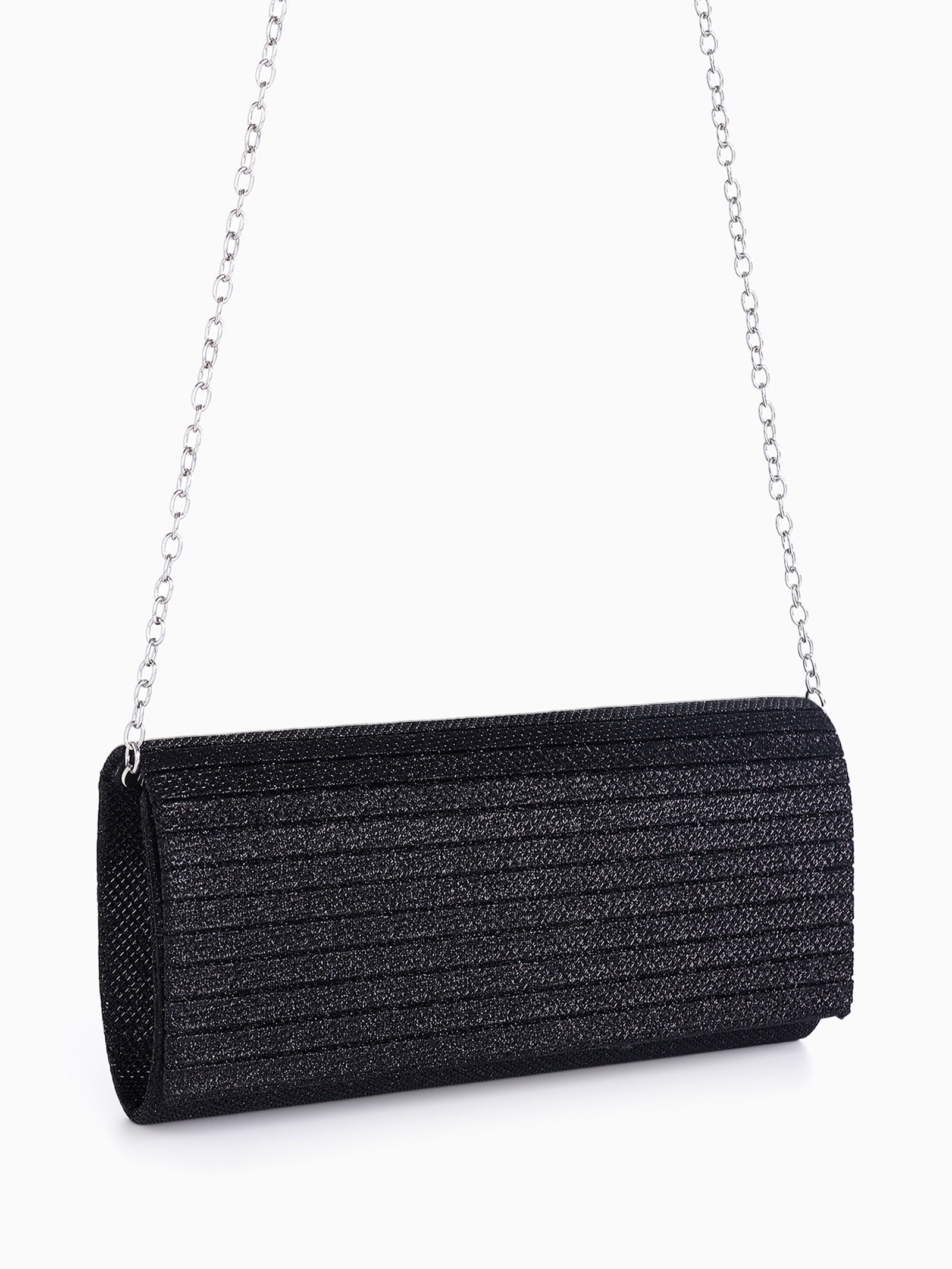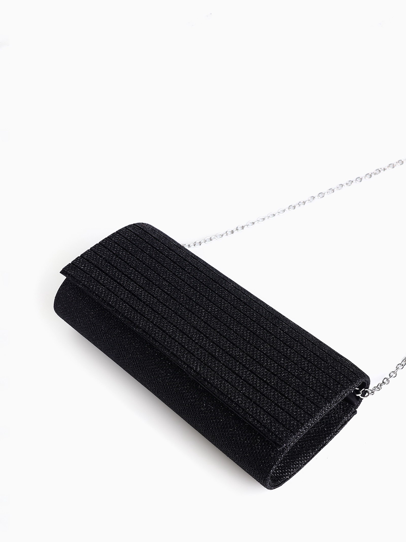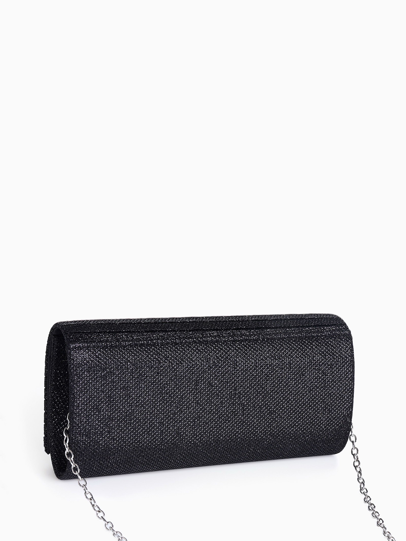 Сумка-клатч на магните, на серебристой цепочке, чёрная, 5x20x9 см., Китай