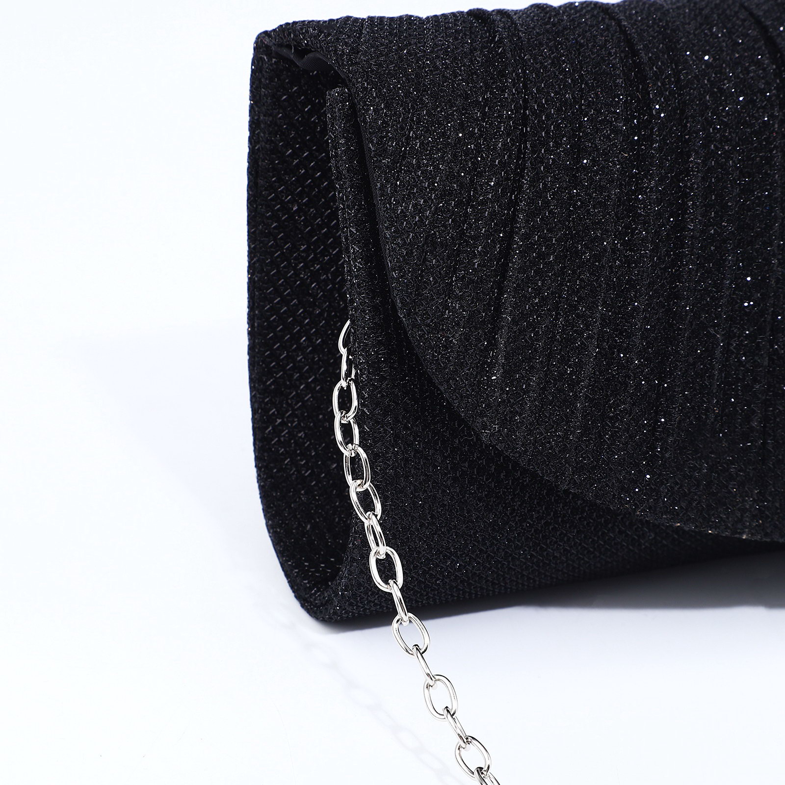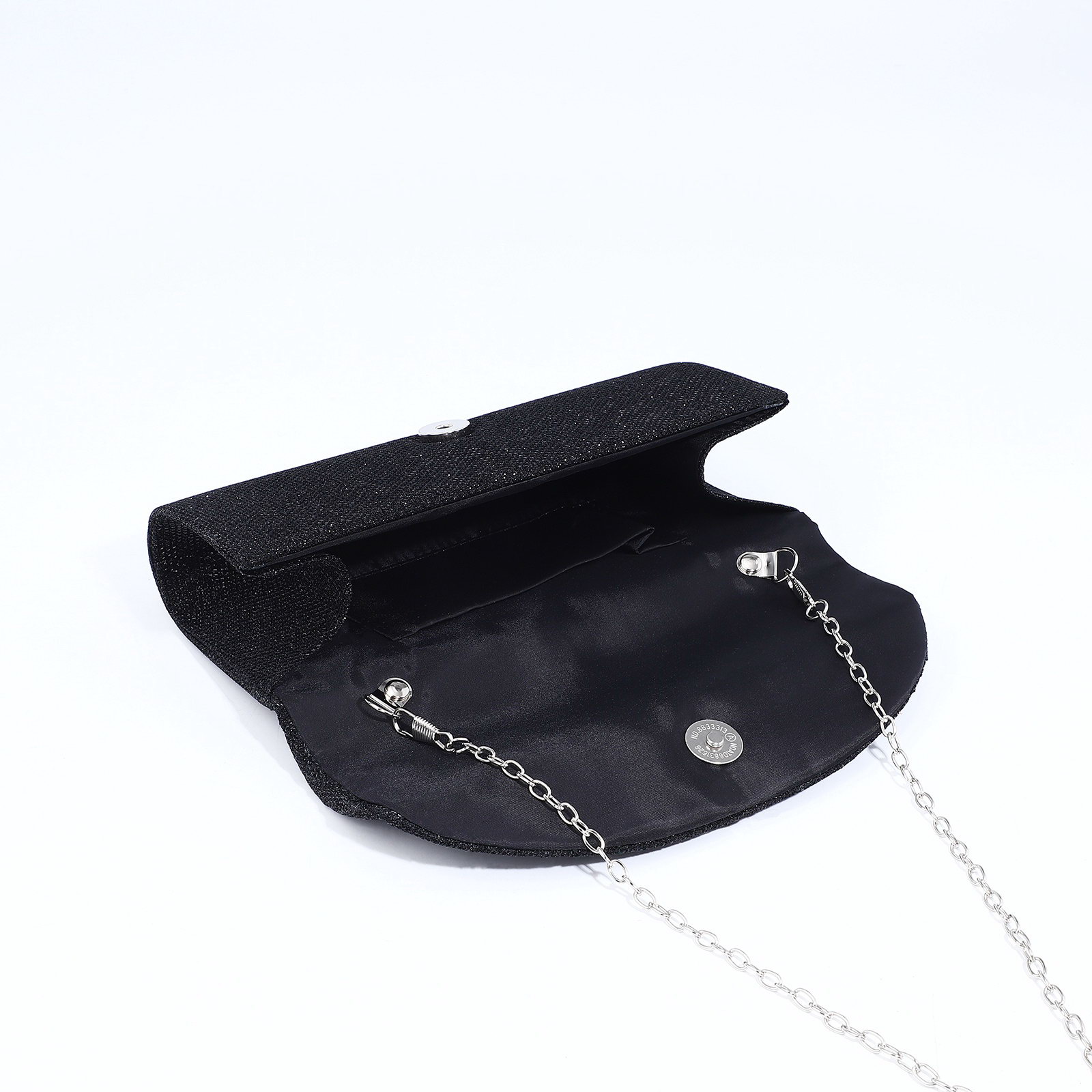 Сумка-клатч вечерняя на магните, на серебристой цепочке, блестящая, чёрная, 5x20x9 см., Китай